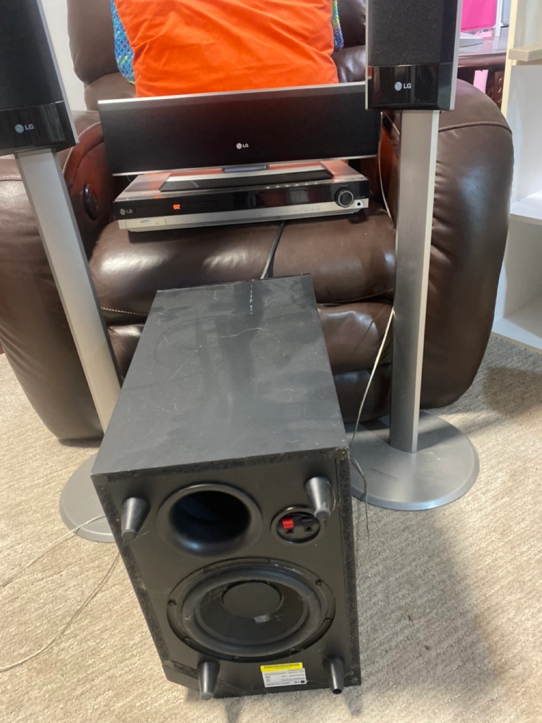 15Selling an LG DVD player with a speaker system. The set includes a DVD player, a centre speaker, and two tower speakers. Perfect for setting up a home theatre system!