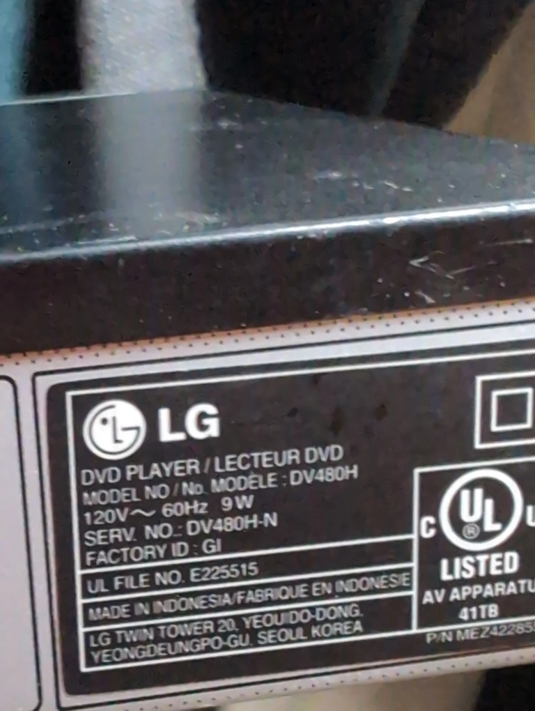 113Selling an LG DVD player, model DV480H. It has HDMI output and supports Dolby Digital. It's in good working condition and ready to play your favourite DVDs!