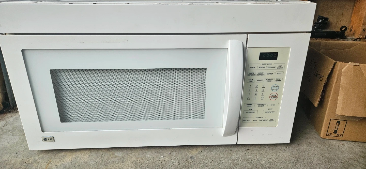 10Selling an LG over-the-range microwave! It's in good condition and ready to heat up your favourite meals. Features include auto touch settings for popcorn, reheating, and more. Plus, there are specific settings for hot dogs and oatmeal!
