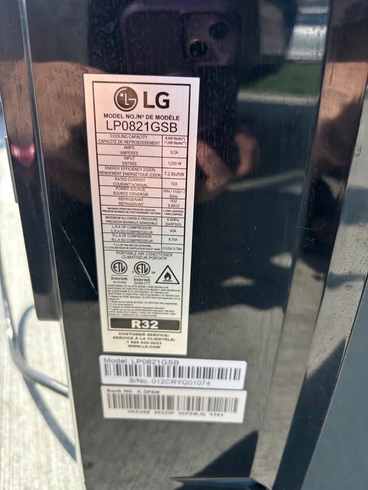 10Selling an LG LP0821GSB Portable Air Conditioner (8,000 BTU DOE / 11,000 BTU ASHRAE). Perfect for cooling rooms up to ~350 sq. ft. Includes: • AC unit • Exhaust hose • Remote control ⚠️ No original box and no metal window insert (can be purchased separately on Amazon or at Home Depot). ✅ Features: • Powerful cooling performance • Fan and dehumidifier modes • Easy-to-use remote control • Eco-friendly R32 refrigerant Price: $260 OBO Pickup in Calgary (SW)