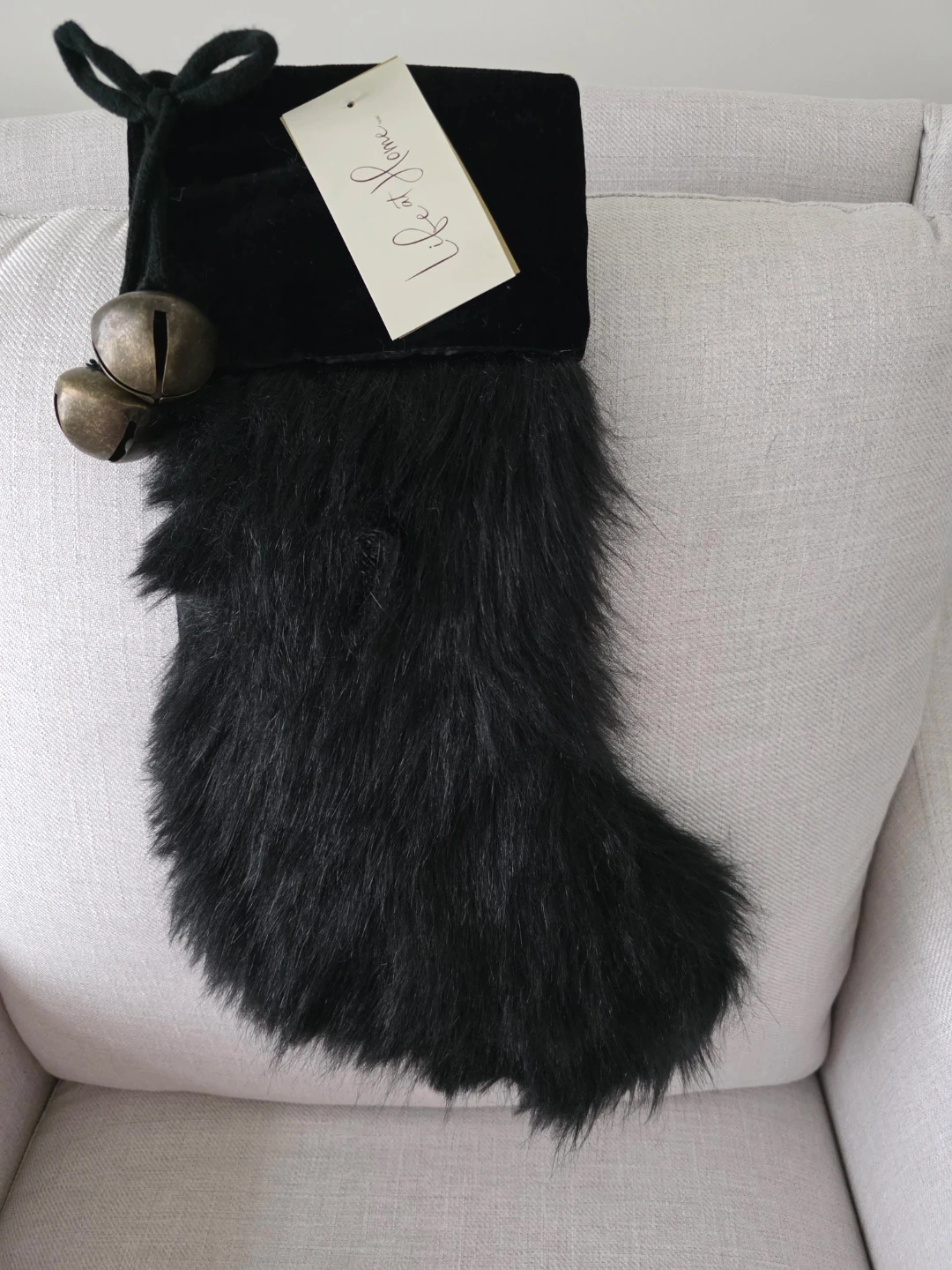18(3) available Here's a festive black Christmas stocking from Life at Home! It features a velvet top, faux fur, and jingle bells.
