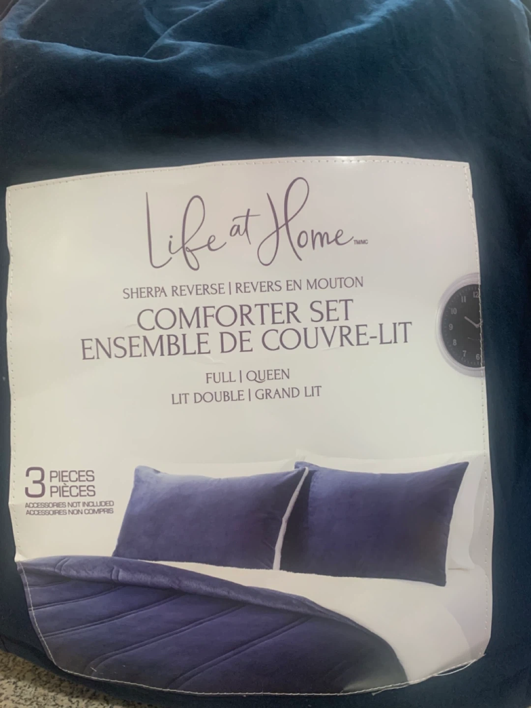 571This set is a full/queen size and comes with 1 comforter and 2 pillow shams. The comforter is a sherpa reverse style, perfect for those chilly nights. The comforter is 100% polyester and the shams are also 100% polyester.pick up: 2520 Guelph St,Vancouver