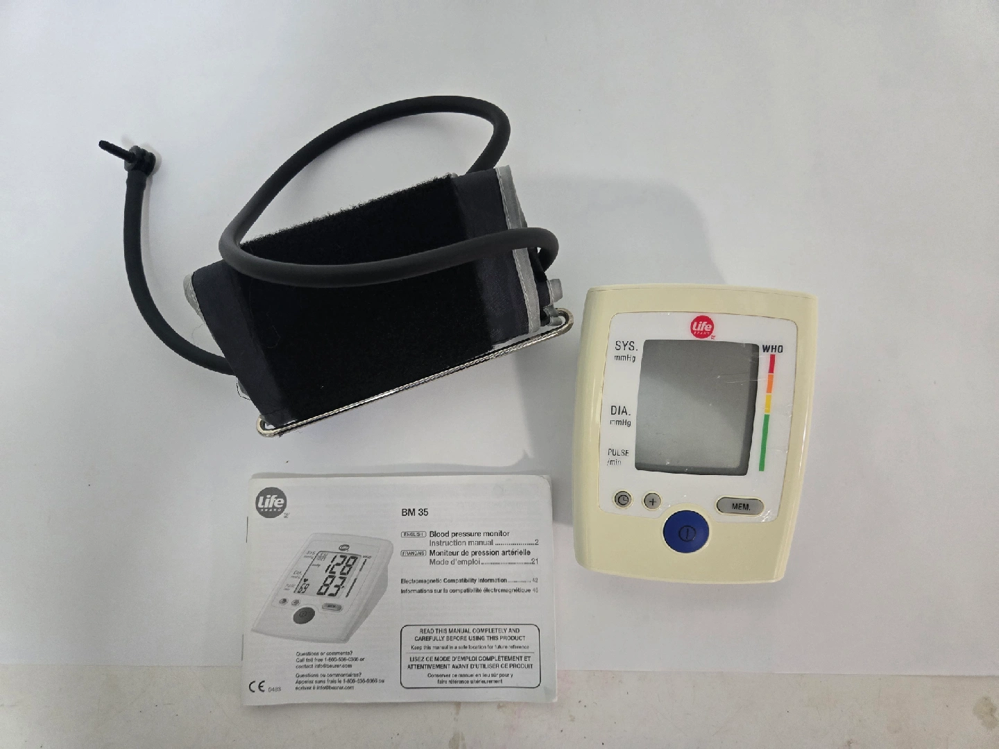 60Selling a Life BM 35 blood pressure monitor! It comes with the instruction manual. This monitor is easy to use and provides clear readings for systolic and diastolic pressure, as well as pulse. Perfect for keeping track of your health at home