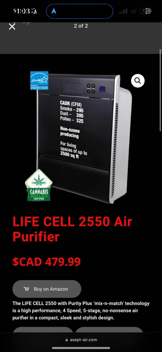 Black air purifier. 4 Speed, 5-stage design. Non-ozone producing. For living spaces of up to 2500 sq ft.