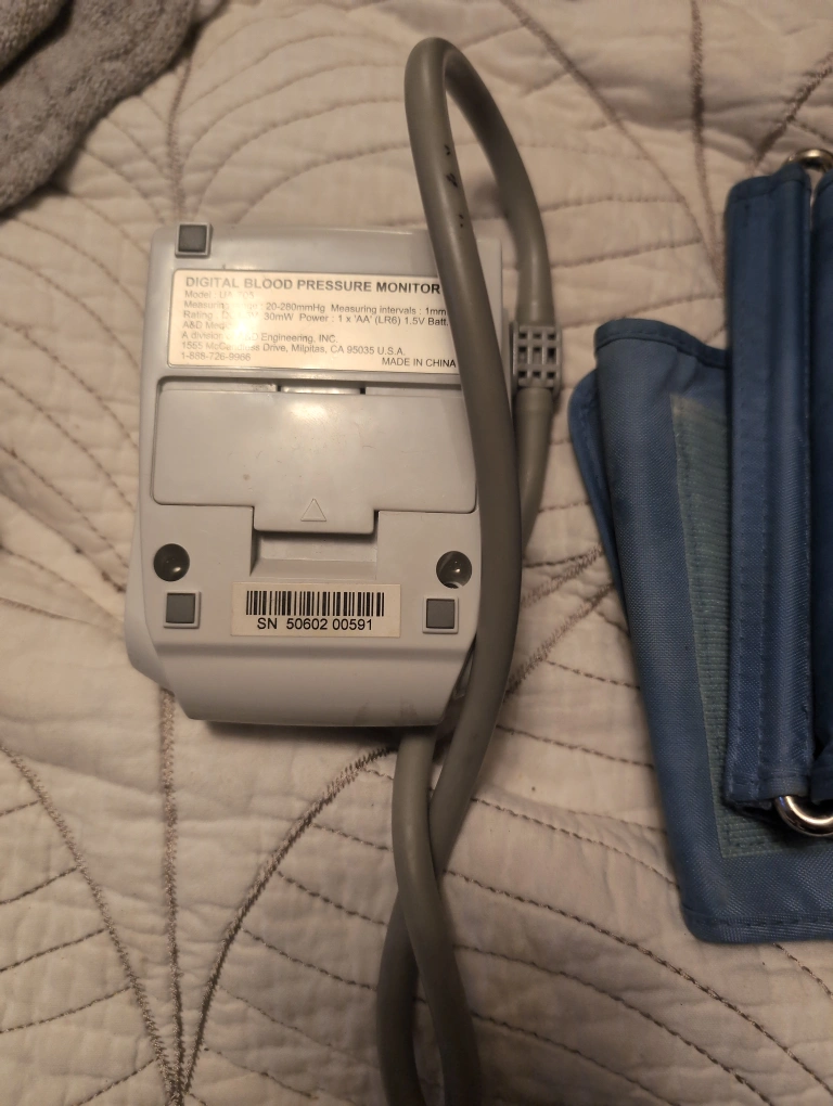 Selling a LifeSource UA-705 digital blood pressure monitor. It's in good working condition and ready to use. It comes with the arm cuff and is battery operated.