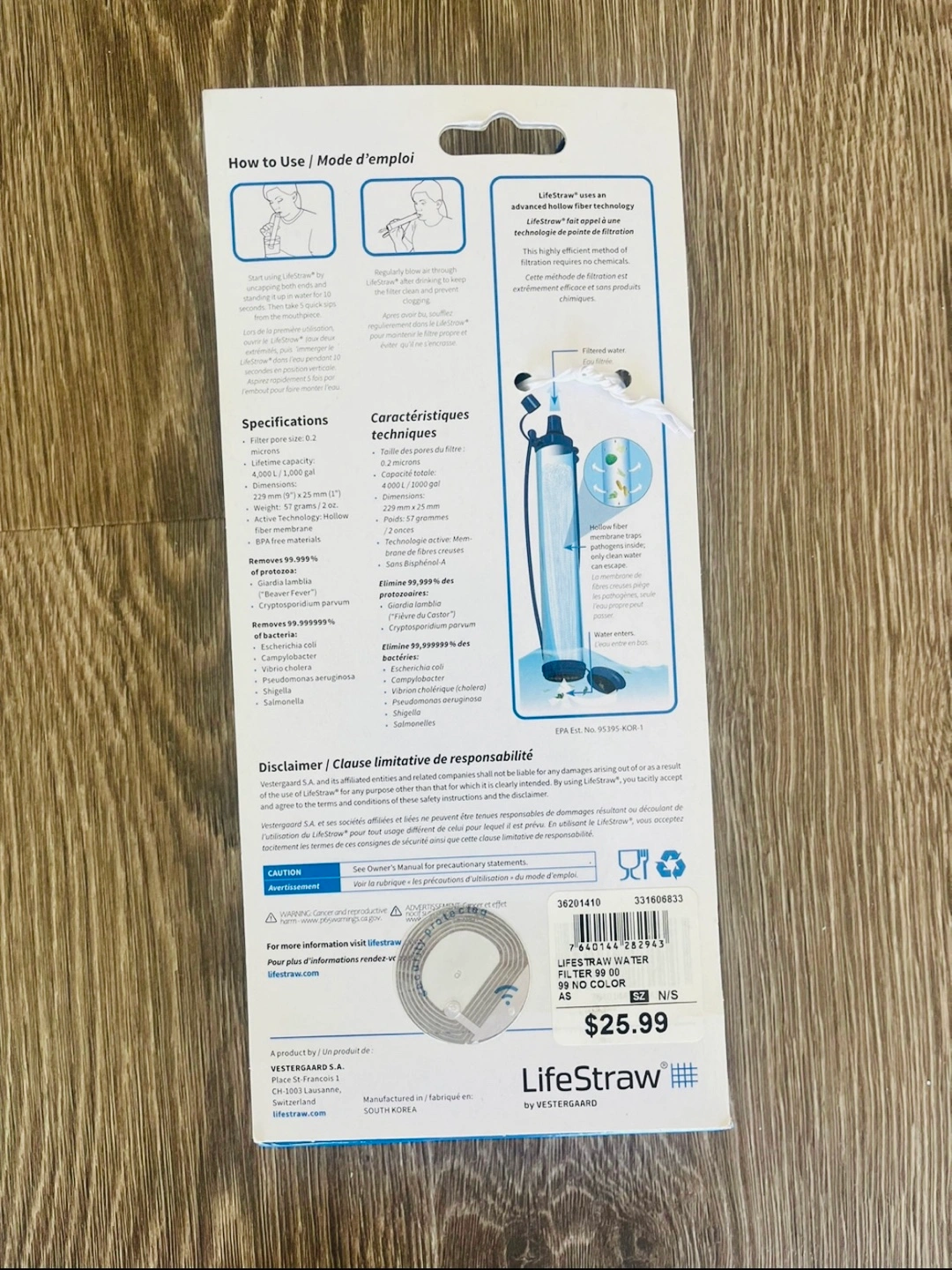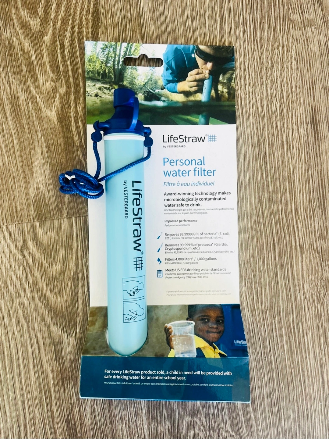 56Award-winning personal water filter. Makes water safe to drink. Removes 99.9999% of bacteria and 99.999% of protozoa. Filters 4000 liters. Meets US EPA drinking water standards. Includes lanyard.