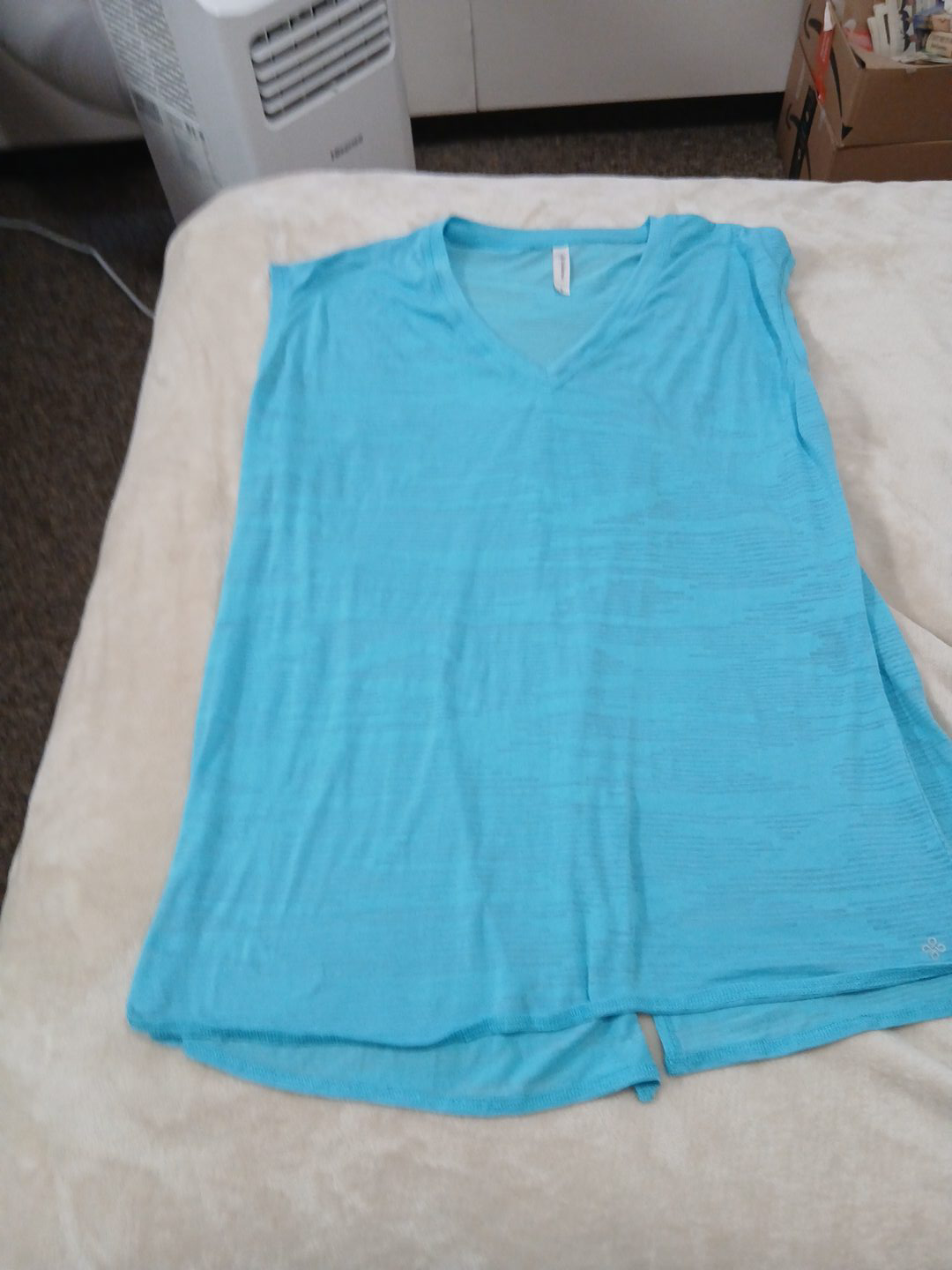 Here's a light blue sleeveless top that's looking for a new home! It's in great condition and ready to be worn. Perfect for those warmer days! Size L
