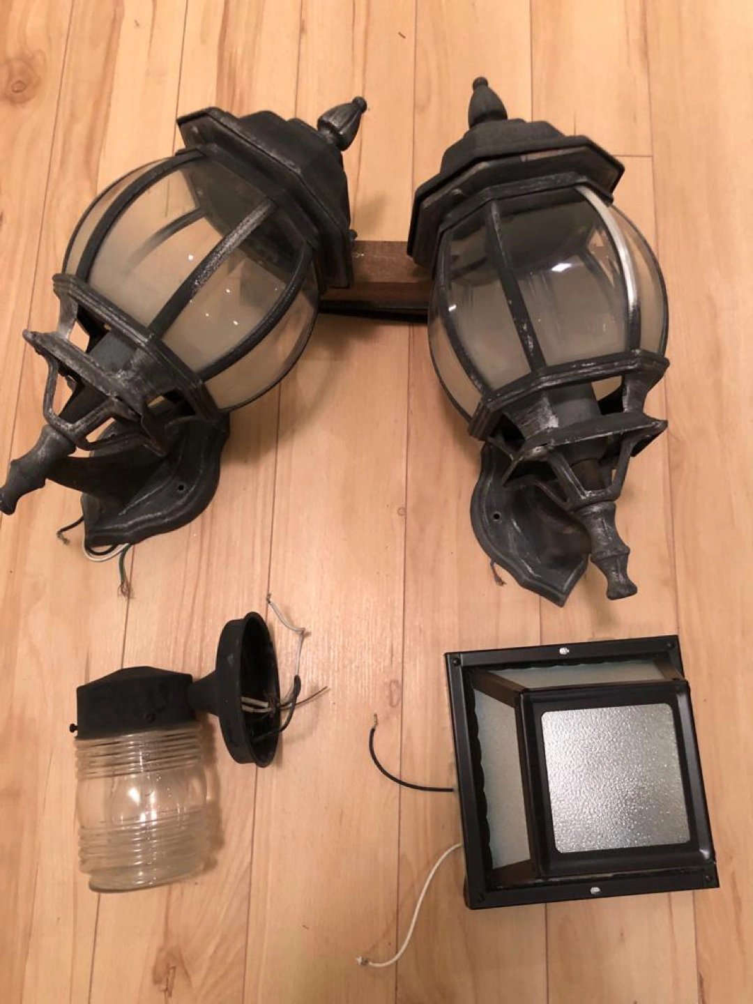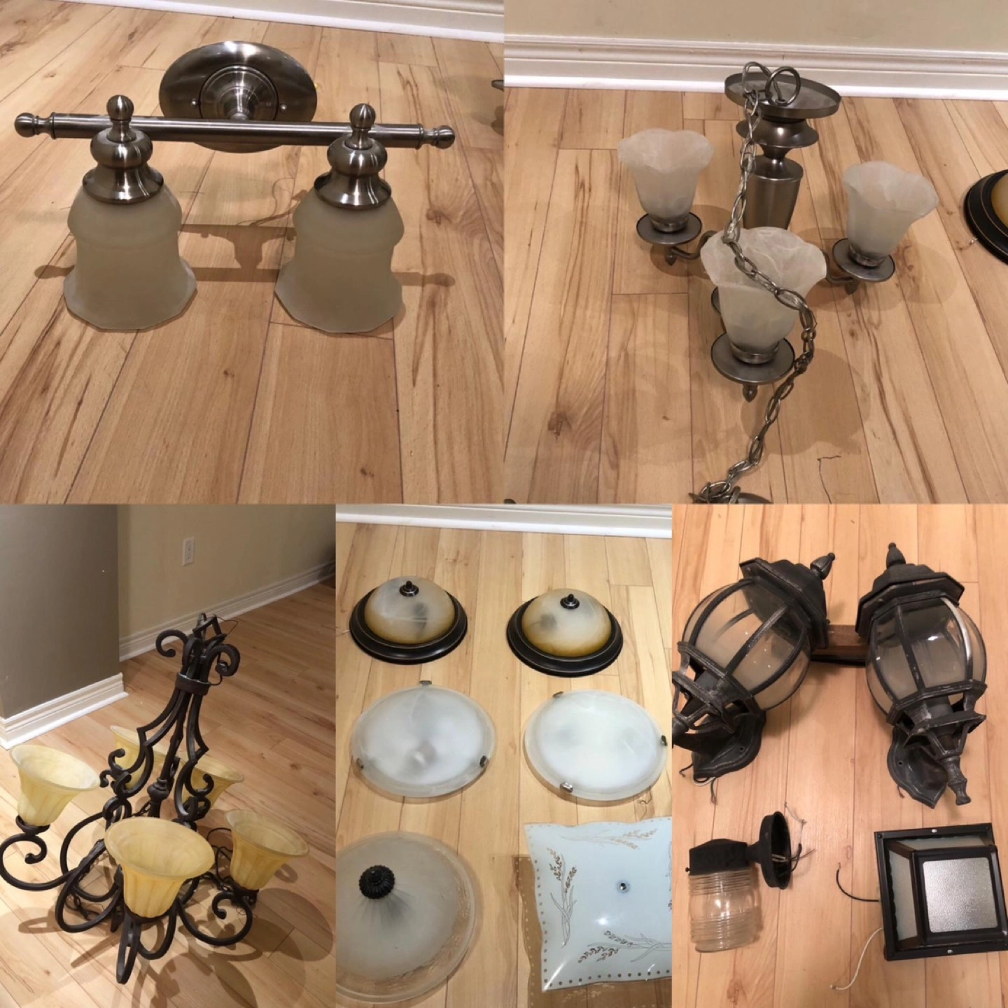 5Indoor and outdoor light fixtures for sale in all working condition. Please dm for price by each item. 4 outdoor lights 6 indoor flush mount 2 chandeliers 1 vanity light All fixtures can be picked up from whitby location.