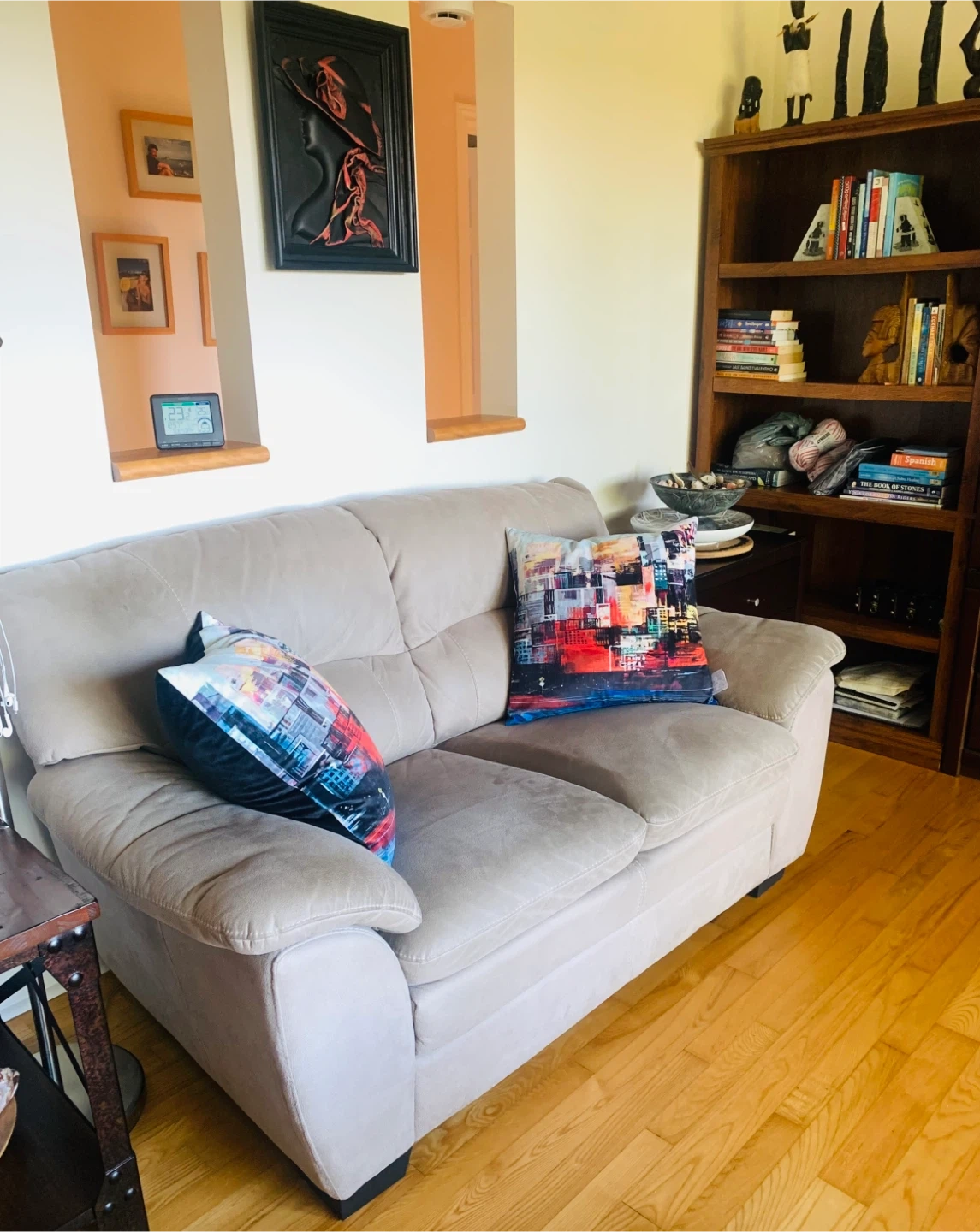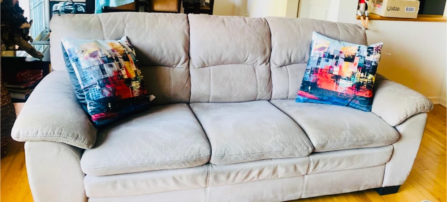 15Two sofas from Leon's furniture store. Very comfortable. Very good condition, minor stain which can be cleaned very easily. Comes from home with no children, pets and no smoke. Fabric: elephant skin. Selling because we need recliners at our age now. $400 or best offer. 401 and Morningside.