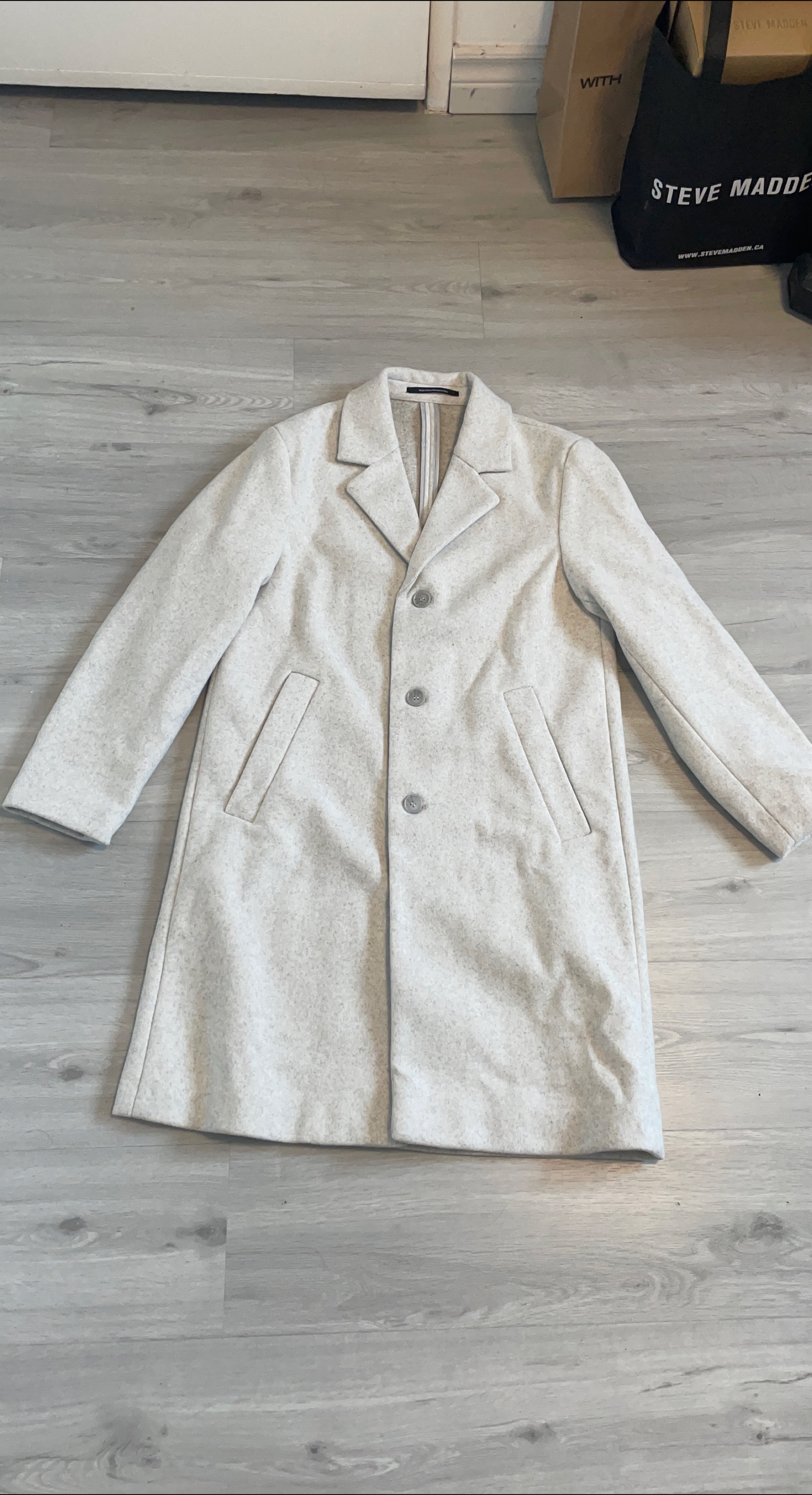 65Selling a light grey overcoat. It's a wool blend and in great condition. Perfect for layering during the colder months! Comes in a white box. Never been used. Exceptional quality Retail value: $150+