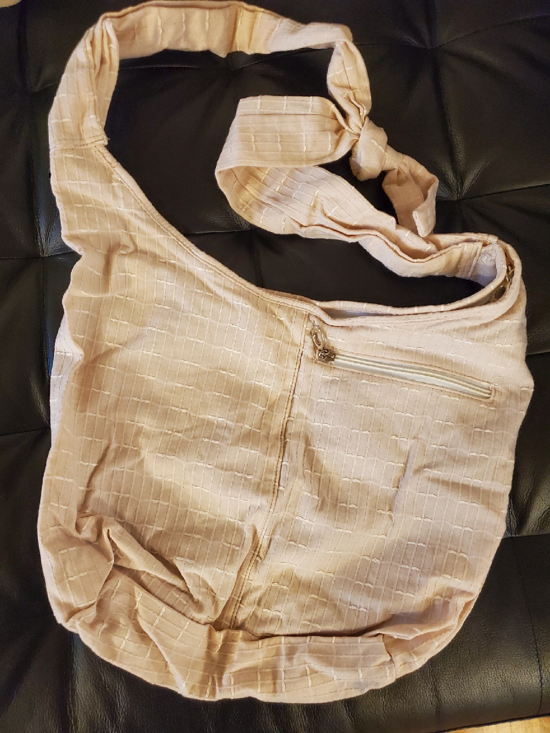 Light Pink shoulder bag with a unique tie detail on the strap!