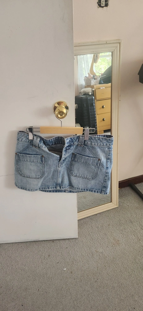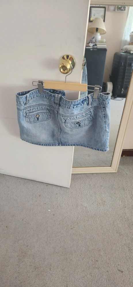 Cute light wash denim mini skirt. Two front pockets. Good condition.