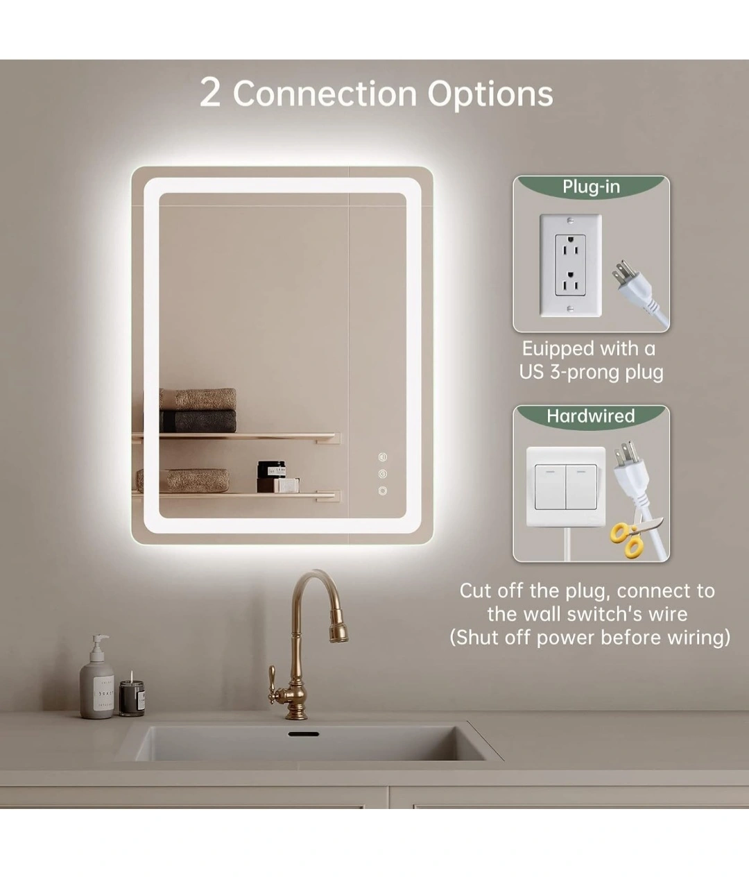 70LOVESPEJO LED Bathroom Mirror 24x32 Inch with Front and Backlight 3 Color Dimmable Vanity Mirror Bathroom Wall Anti-Fog Memory Function Shatterproof Double Illuminated Lighted Makeup Mirror CRI90