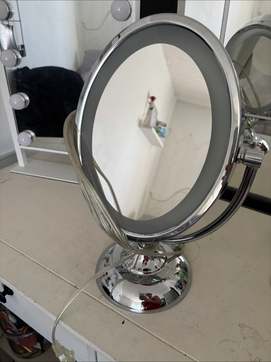 Selling a lighted vanity makeup mirror! It's in great shape and perfect for getting ready. The mirror has a sleek, modern design and provides excellent lighting for makeup application and skincare routines