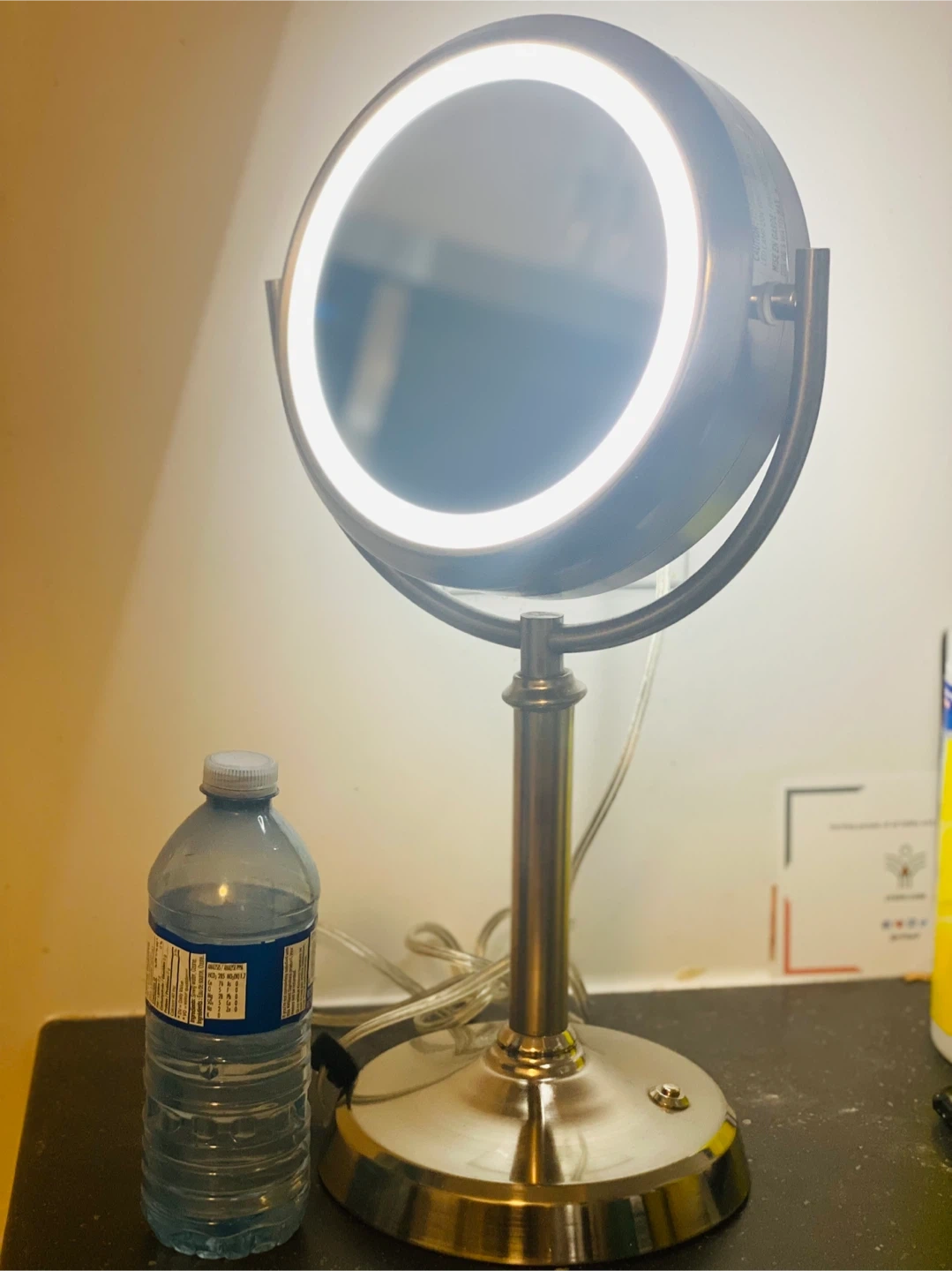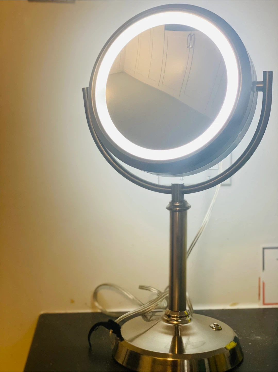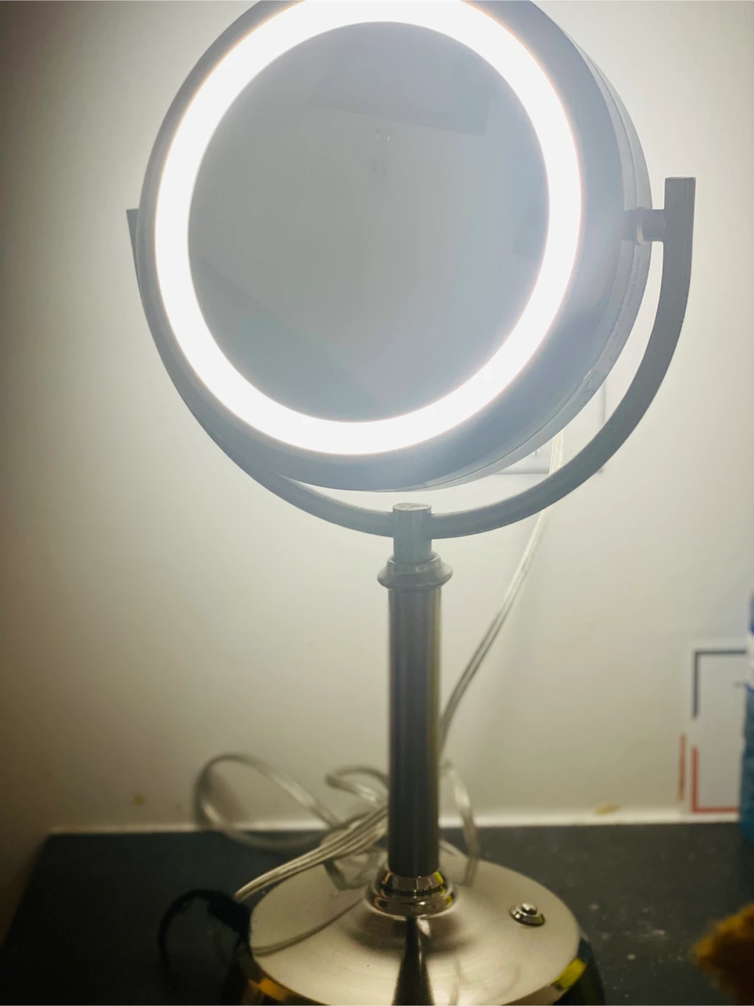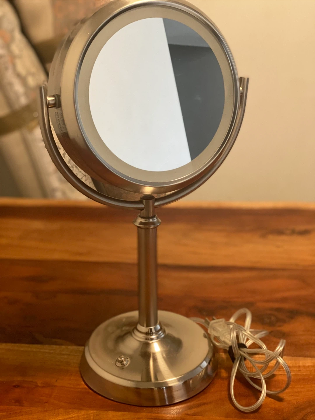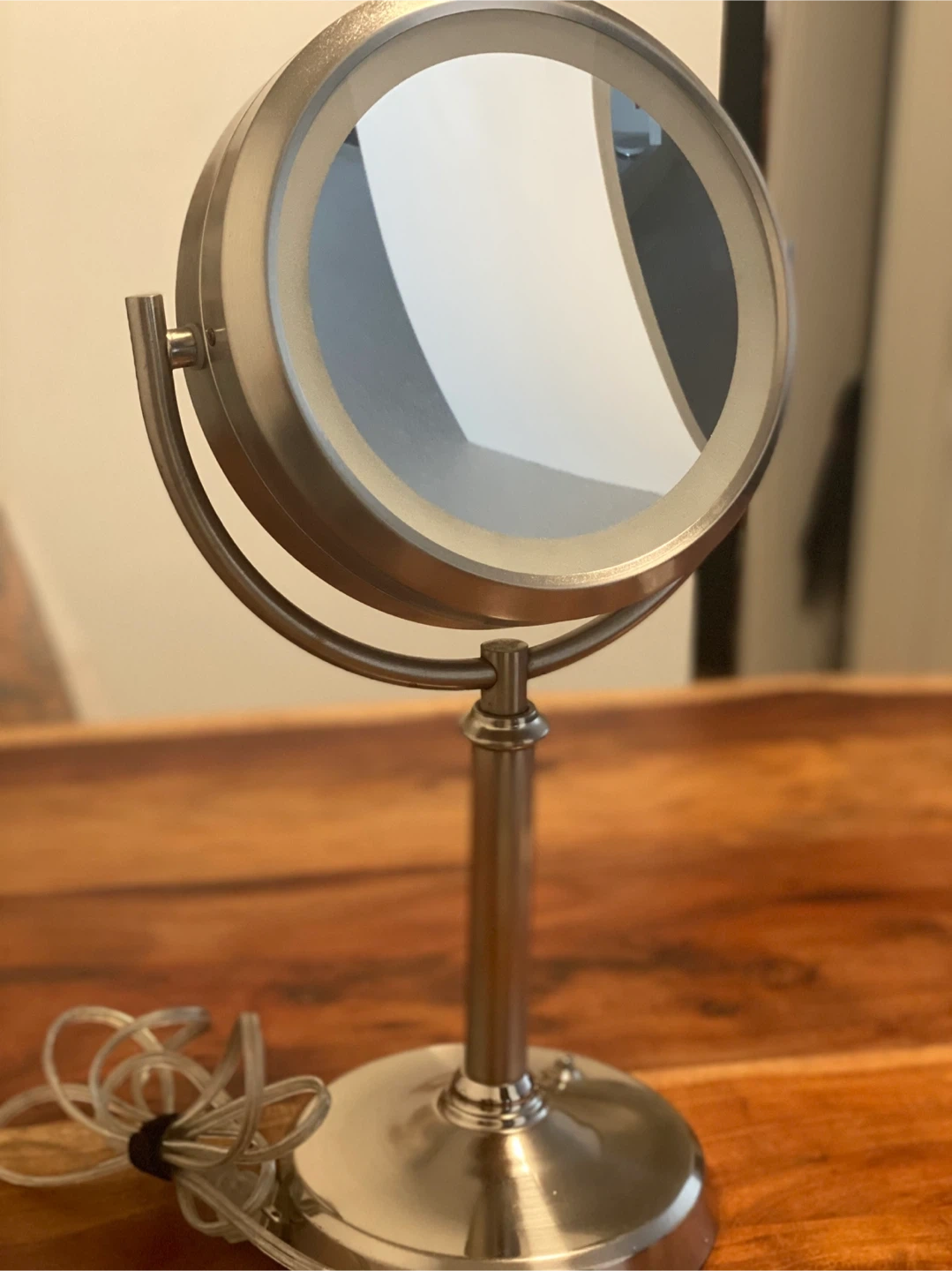 Gently used lighted vanity mirror in great condition. It's perfect for applying makeup or doing your skincare routine. The mirror has a built-in light that provides even illumination, and the adjustable stand makes it easy to find the perfect angle. It's a great addition to any vanity or bathroom countertop! Note: first come first serve Cash only Pet and smoke free home.