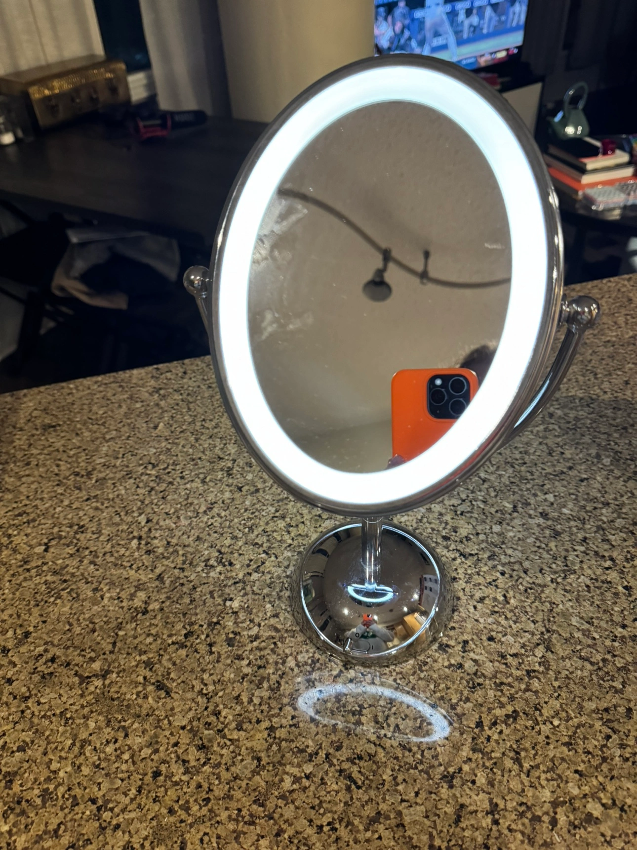 128Vanity mirror with normal and magnified reflection. Two light setting.
