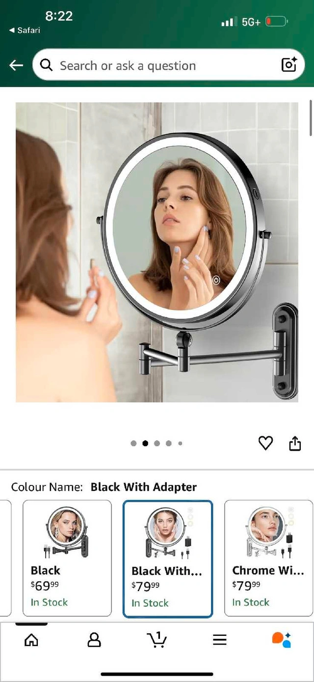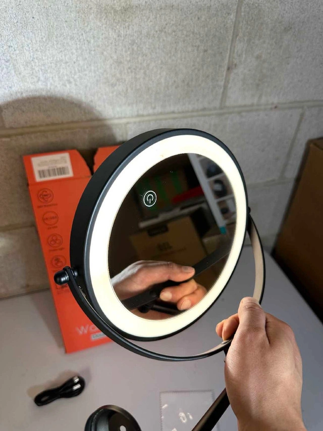 68Note: The included plastic wall anchors (dowels) are slightly damaged. This does not affect the mirror’s functionality or installation — they can easily be replaced with standard wall anchors if desired. Rocollos Lighted Wall-Mount Makeup Mirror – 8" Double-Sided 1X/10X Magnification, Rechargeable, Dimmable, 360° Swivel | For Bathroom, Bedroom, Vanity Brand: Rocollos Shape: Oval Room Type: Bathroom, Bedroom, Dressing Room, Living Room, Nursery Frame Material: Metal Style: Antique Dimensions: 33L × 22.9W cm ✨ 2-in-1 Mirror with 1X & 10X Magnification Perfect your makeup routine with Rocollos’ double-sided vanity mirror. 1X side: for your full-face look — ideal for daily makeup or skincare. 10X side: zooms in on every detail — perfect for eyeliner, brows, and lips. Tip: For the 10X magnifying mirror, keep your face about 4 inches away for a clear, distortion-free view. Type-C Rechargeable & Cordless Convenience No more messy cords or constant battery replacements! Built-in 1500 mAh rechargeable lithium battery with Type-C charging cable (charger not included). Enjoy a sleek, modern look on your wall — no visible wires, just clean elegance. 3 Color Lighting Modes + Touch Dimming Customize your lighting for every look: White Light: for natural daylight & daily makeup ☀️ Warm Light: perfect for evening or party glam Cool Light: best for detailed makeup in bright settings Easily switch modes and adjust brightness with a simple touch sensor. 360° Swivel & Extendable Arm Adjust your mirror effortlessly to any angle or position. The extendable arm lets you pull the mirror closer when needed and fold it back flat to the wall to save space — ideal for compact bathrooms or vanity corners. ️ Easy to Install Anywhere Wall-mount base measures 5.1" length × 1.6" width, fitting most standard spaces. Perfect for bathrooms, dressing rooms, bedrooms, or any space where precision and lighting matter most.