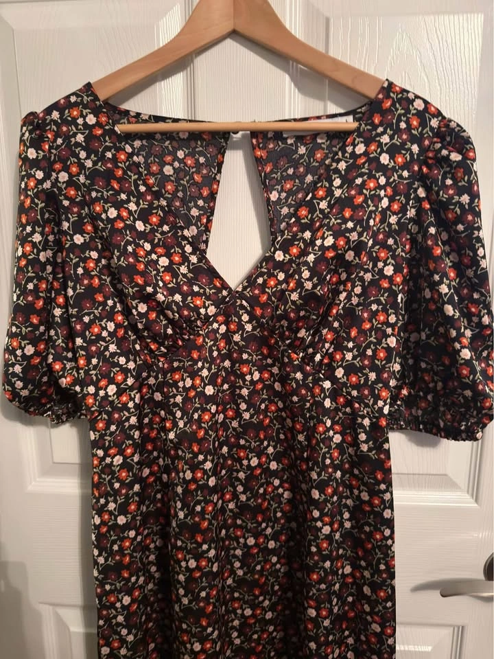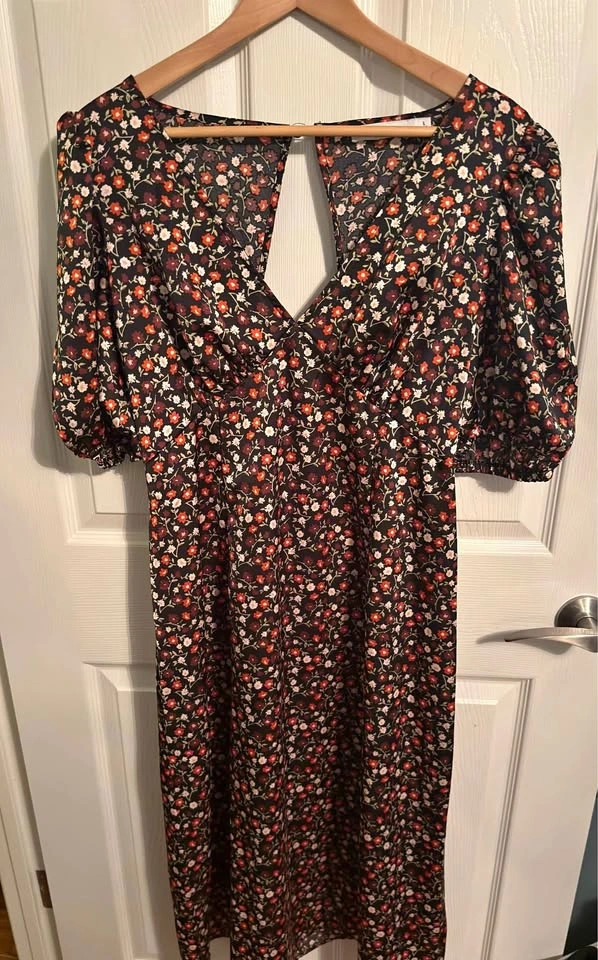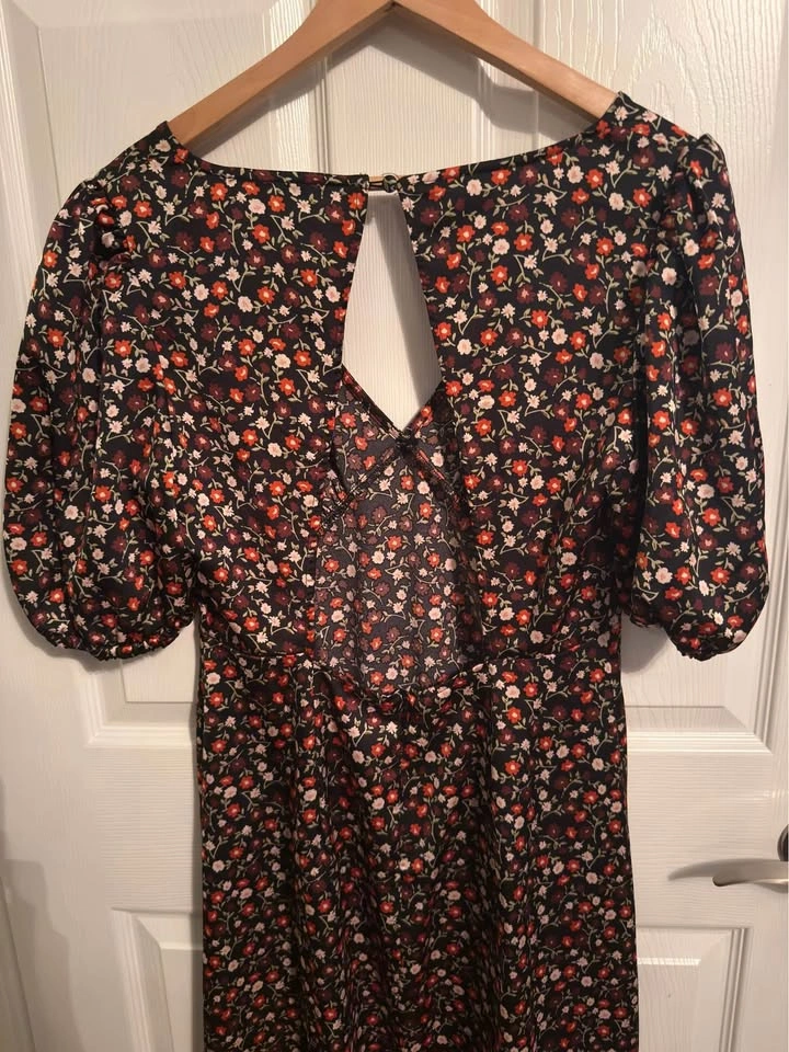 60Like NEW Balloon Sleeve Midi Dress Just Fab Size Large ( see size chart photo) Open back Zipper back 100% Polyester Porch PU South Arm