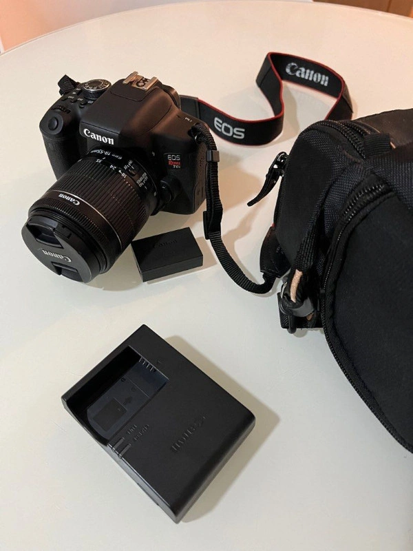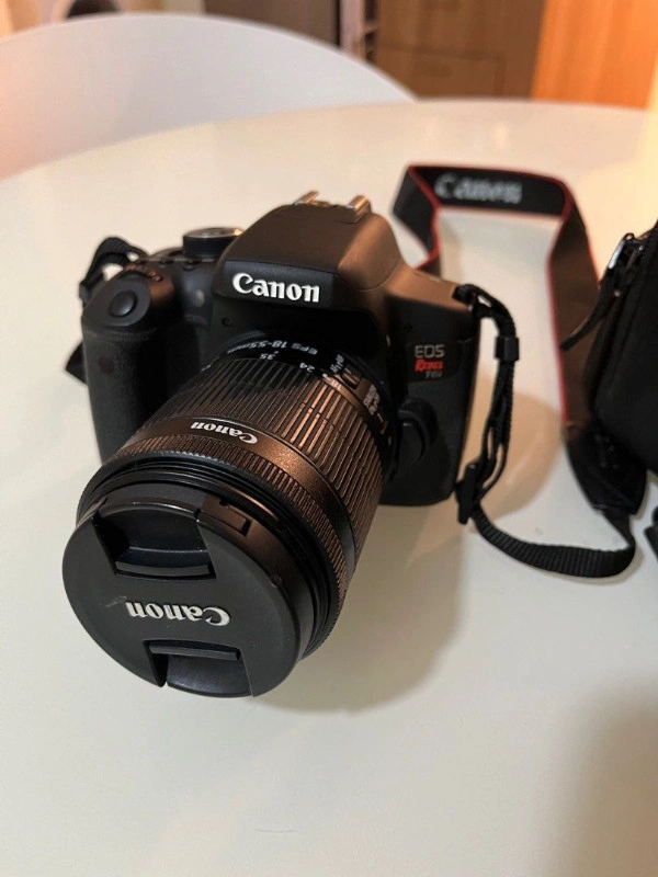 0Selling a Canon Rebel T6i DSLR Camera in practically brand new condition, only used a handful of times. Comes together with the EF-S 18-55mm STM lens and accessories including the battery, charger, neck strap, front and rear caps and a small camera bag. Asking $550 firm. This is a top of the line non-professional Canon DSLR camera with a revolving touchscreen LCD, a full HD video recording capability, and built in Wi-Fi and NFC connectivity for instant downloads to your phone. Canon EOS Rebel T6i (750D) key features: 24.2MP APS-C CMOS sensor 19-point autofocus system Hybrid CMOS AF III focus system (live view) 7560 pixel RGB + IR metering sensor with skin tone detection 3" fully articulating touchscreen LCD 5 fps continuous shooting 1080/30p video Wi-Fi with NFC