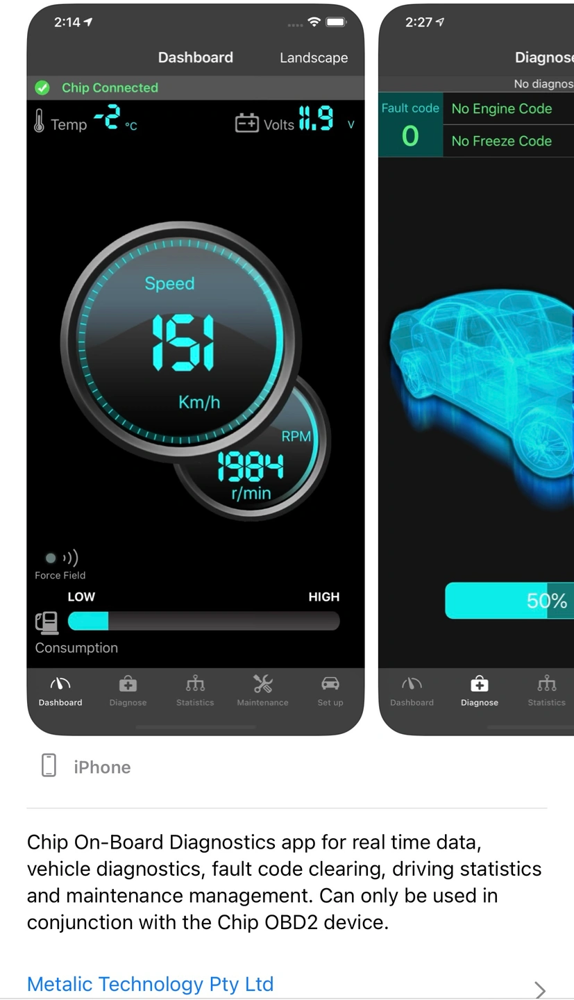 ***LIKE NEW CHIP OBD READER *** CHIP OBD : Chip On-Board Diagnostics app for real time data, vehicle diagnostics, fault code clearing, driving statistics and maintenance management. Can only be used in conjunction with the Chip OBD2 device Electronic Rust Protection - Unit delivers 24 milliamps of impressed current in order to cathodically protect the vehicle’s metal surfaces from corrosion FOUND IN APP STORE ***WAS USED ON MY VEHICLE BEFORE I SWITCHED TO PERMANENT INDOOR PARKING*** $ 100.00 OR BEST OFFER !!!! Message or Text 7803403211 *** item for pick up at secure location only***