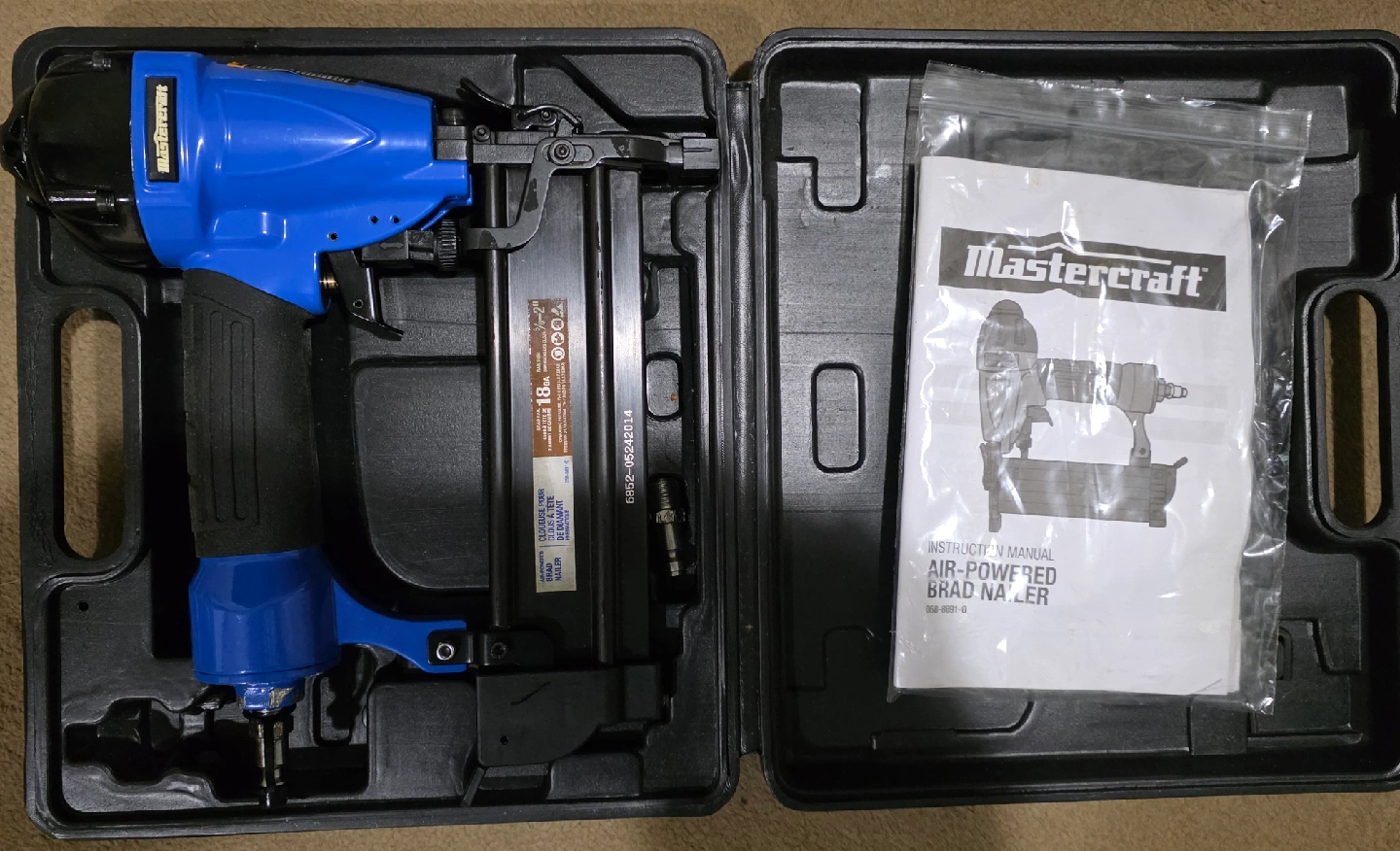 Show allLike New Mastercraft Air Powered Brad Nailer With Nails And Oil