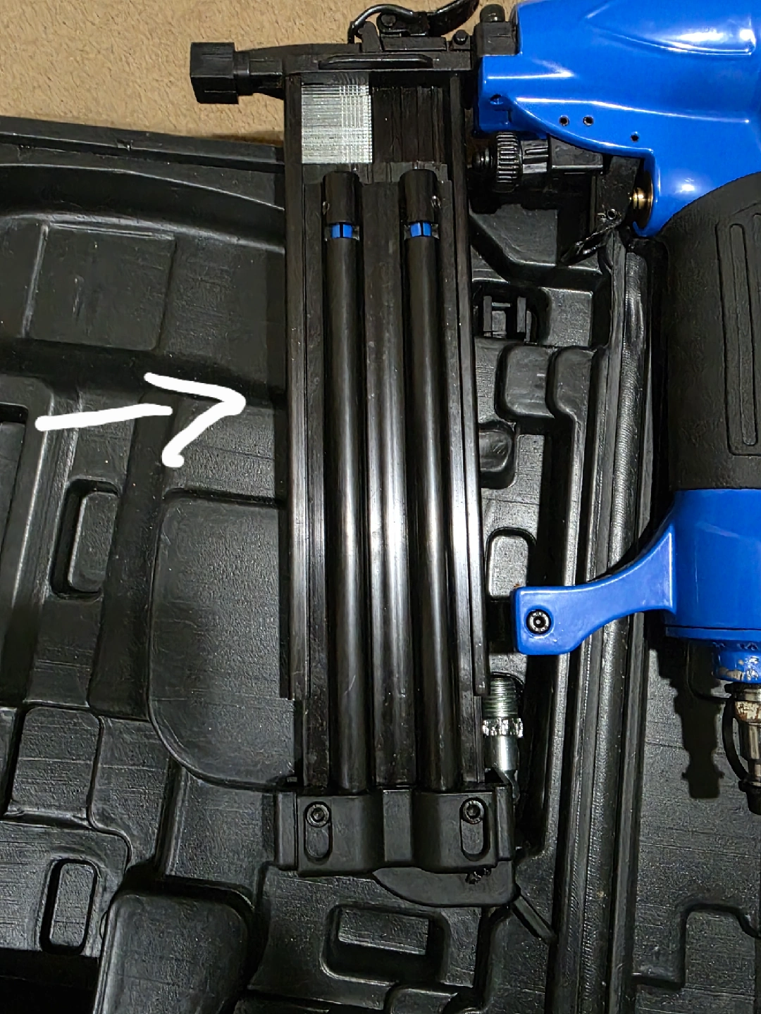 174In like new condition. Used twice The only minor issue with it is that the part thats pointed out in the 4th picture slips out when in use. Can be just duct taped so it wont come out. Comes with a nearly full box of nails and lubricating oil. $45 etransfer preferred Pickup only in Scarborough around Kennedy and Danforth. For faster response plz text 647-795-7229