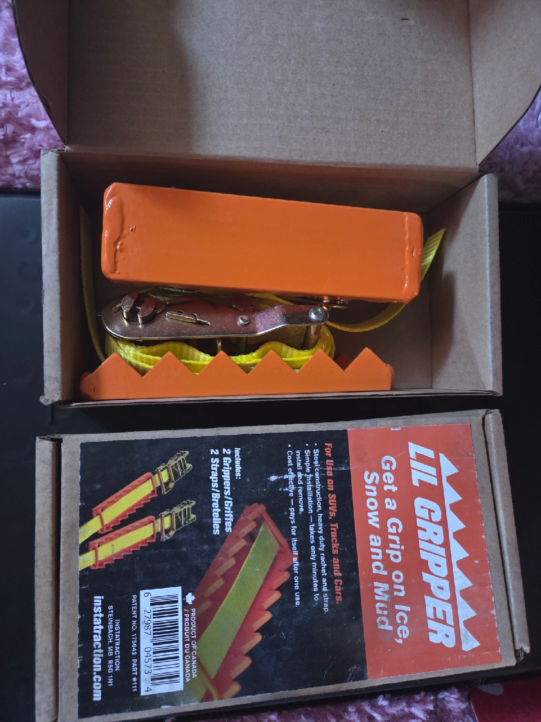 Get a grip on ice, snow, and mud brand new never used lil gripper tire straps they go for about $160 each asking $200 obo