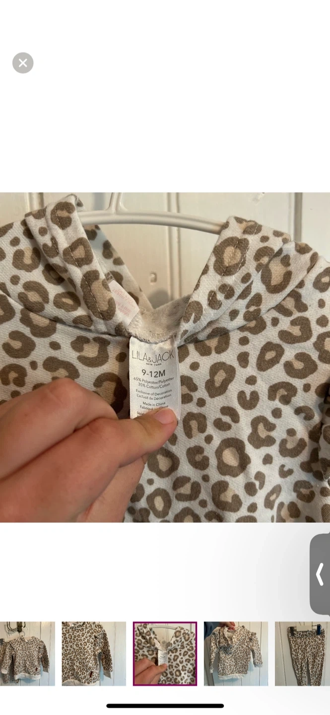 Lila & jack brand. 2pc lounge set of pullover hoodie and leggings. Brown cheetah print. Size 9/12m. Brand new condition $10 Pickup between kincardine & ripley or I can arrange delivery in port Elgin-Owen sound, walkerton-Durham, wingham-listowel-kw/cambridge, goderich-bayfield, Woodstock & Arthur-Orangeville-Newmarket-Lindsay-Peterborough AREAS.