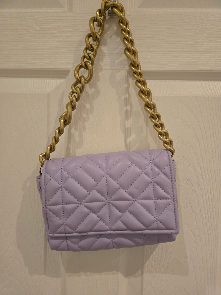 78Selling a cute lilac quilted bag with a gold chain strap! It's in great condition and perfect for adding a pop of colour to any outfit