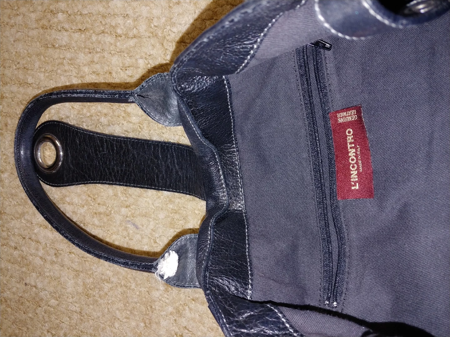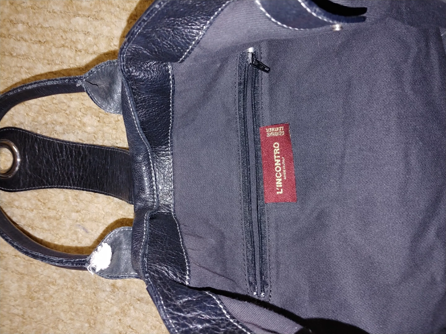 17This is a stylish L'incontro tote bag made of genuine leather. In great condition. It's a beautiful black colour and perfect for everyday use. There is a zipper pocket inside.