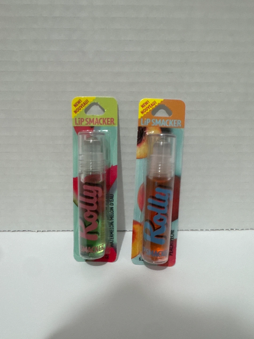 78Two new Lip Smacker Rolly lip glosses! One is watermelon flavour and the other is peach. Never opened and ready for a new home!