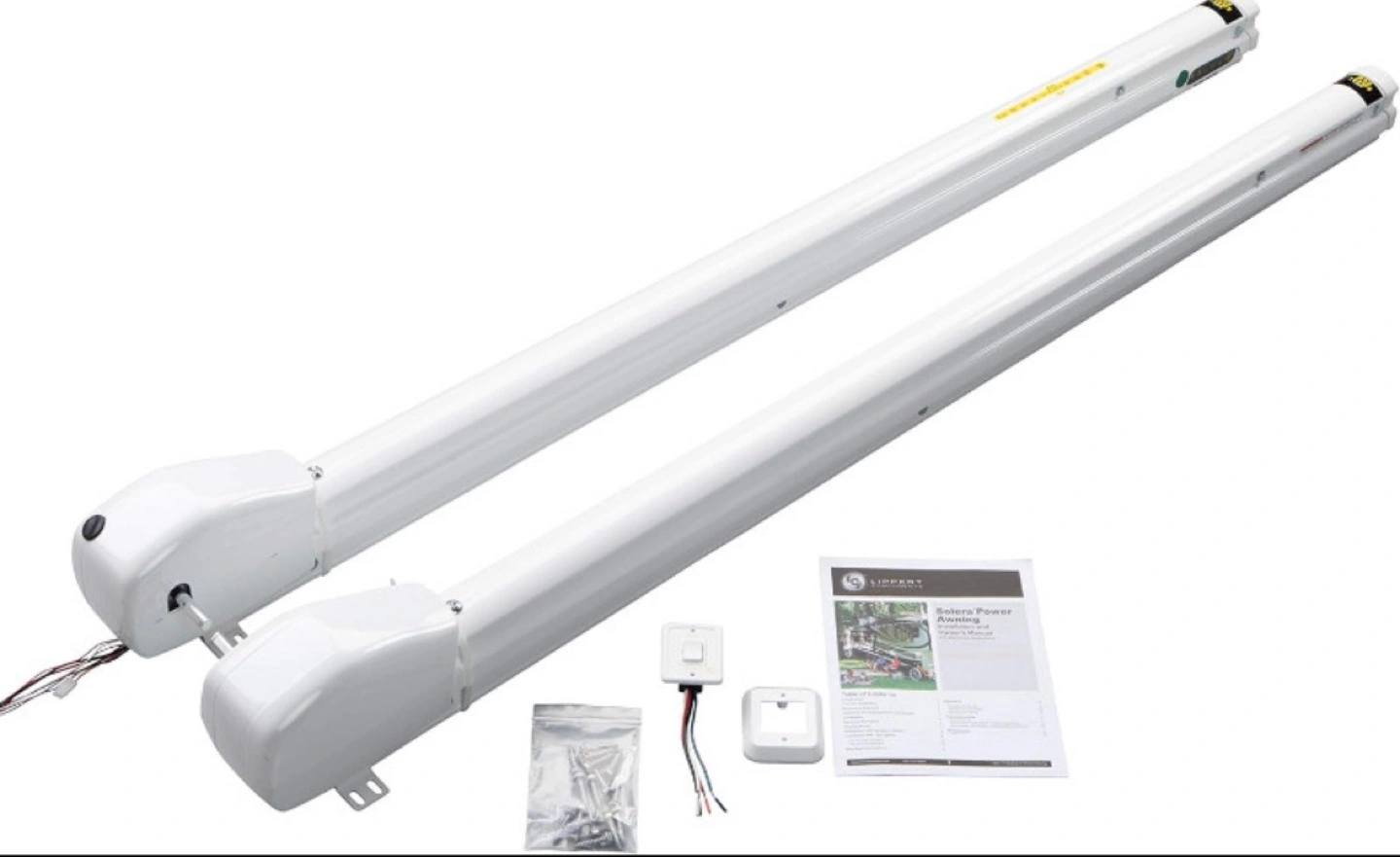 Selling Lippert 759405 Solera Smart Power 12V Universal RV Awning Arms - White 69". They are new, never installed. They may have a bit of scuffing from S&H