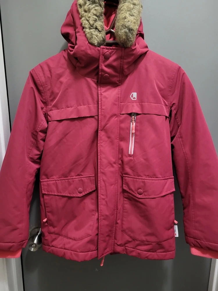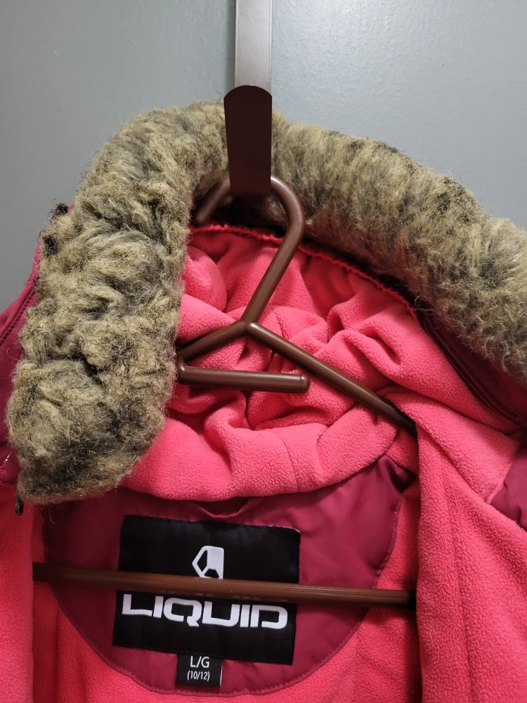 10A cozy and stylish winter jacket for girls! This Liquid brand jacket is a size Large (10/12) and features a warm, faux-fur trimmed hood. Perfect for keeping your little one snug during the cold Canadian winters!