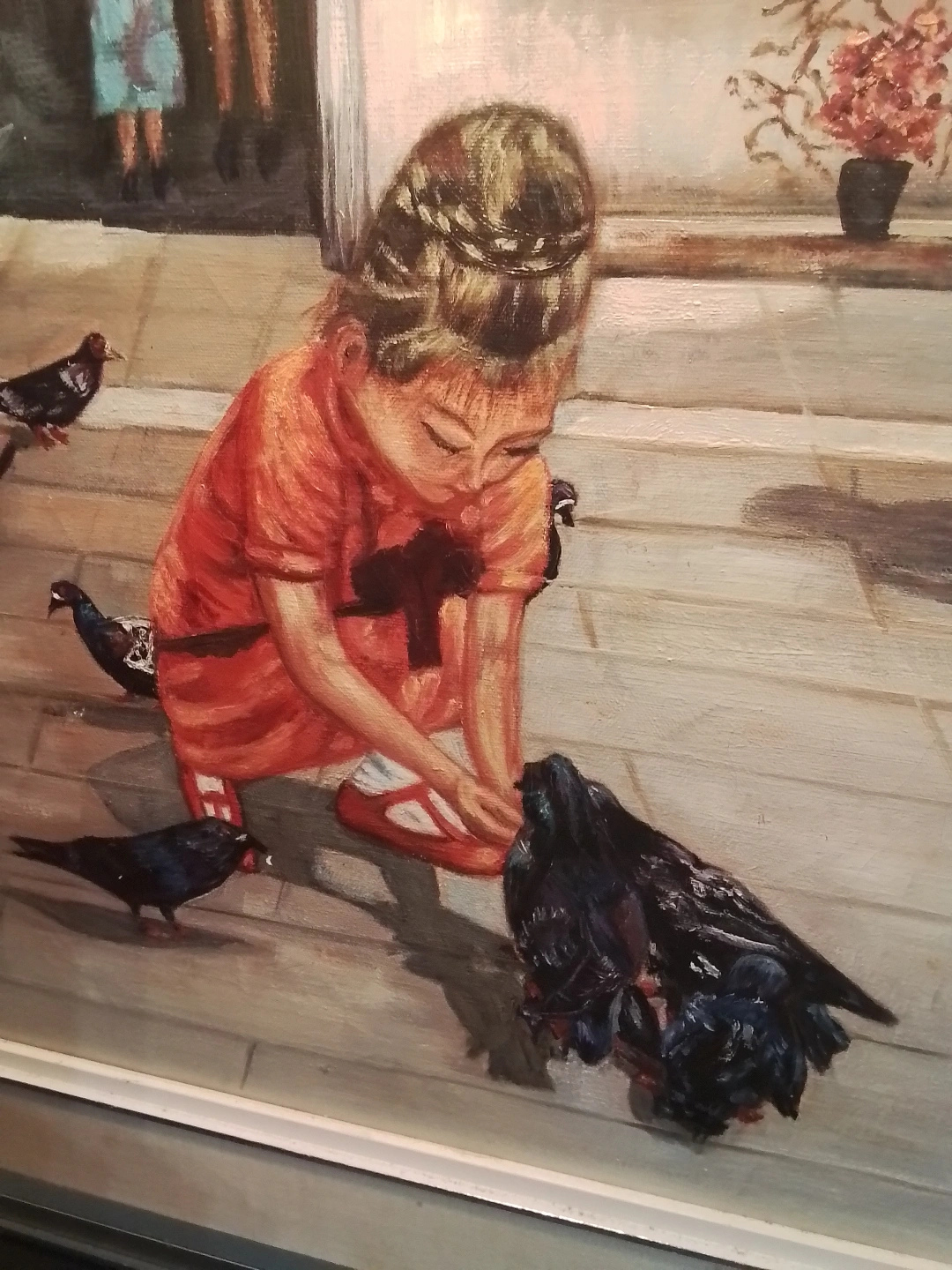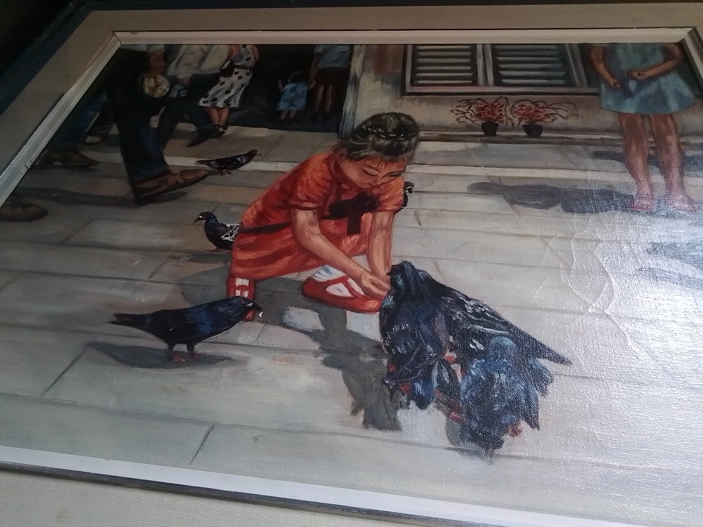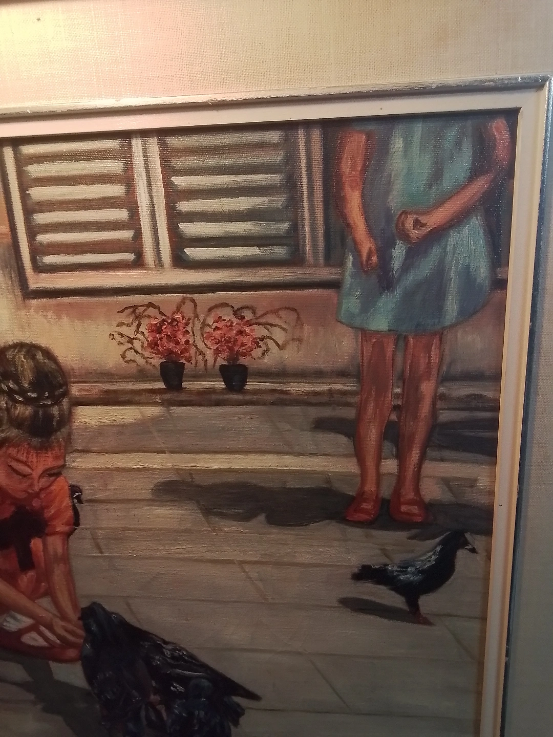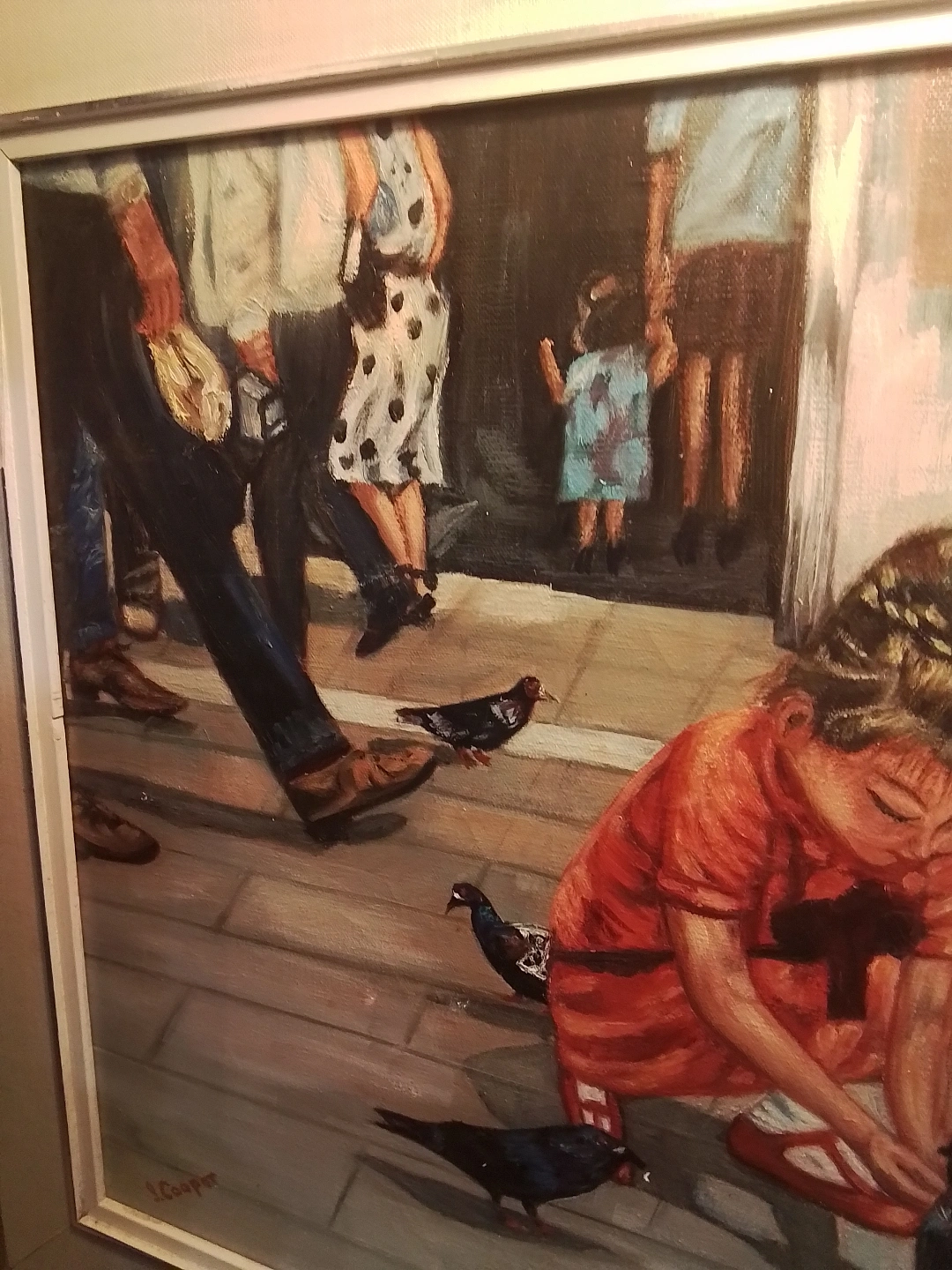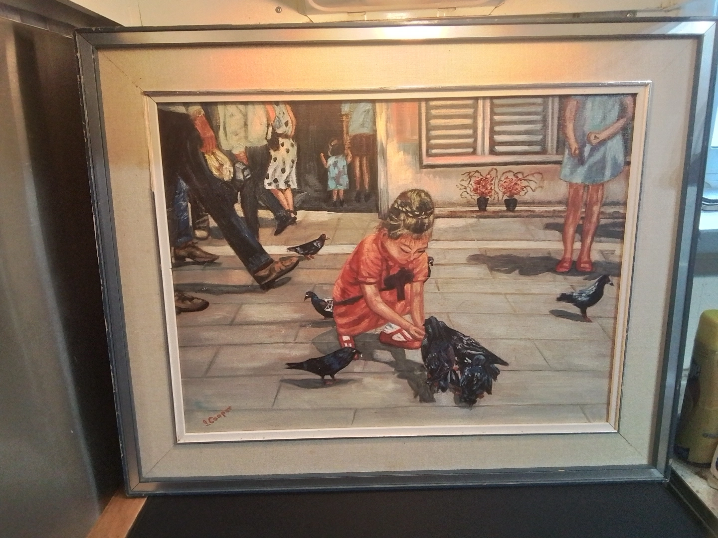 Lisabel Cooper "Feeding the Pigeons" OOC Canada Charming vintage framed painting. Depicts a young girl feeding pigeons. Features pedestrians in the background. Oil on canvas. Nicely framed. This is an original oil on canvas painting by listed artist Lisabel Cooper, entitled "Feeding the Pigeons". It depicts a young girl in a red dress feeding pigeons in a city square. The painting is signed by the artist in the lower left corner. The painting is in good condition. 15X21: without frame, 24X30: titled Feeding the Pigeons, frame shows wear, see photos for details Here are the details: * Artist: Lisabel Cooper * Title: Feeding the Pigeons * Medium: Oil on Canvas (OOC) * Size: 24" x 30" * Frame: Included Looking at similar pieces by Lisabel Cooper on Kijiji, a fair price for this painting would be $175. This piece is offered at that price point. If the ad is up, the painting is available! Don't miss out on this opportunity to own a piece of Winnipeg art history! Pickup at Young Street and Steels Ave