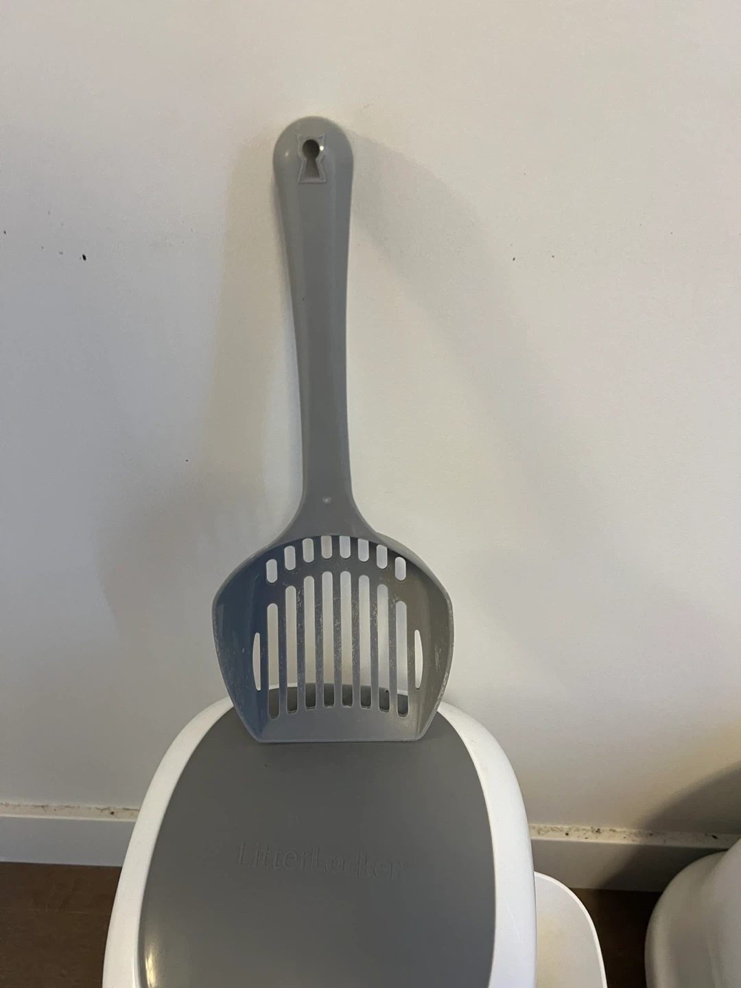 Selling a Litter Genie cat waste disposal system. It's in great condition and comes with the scoop. Also included is a cat litter box. Both items are white/green and grey.