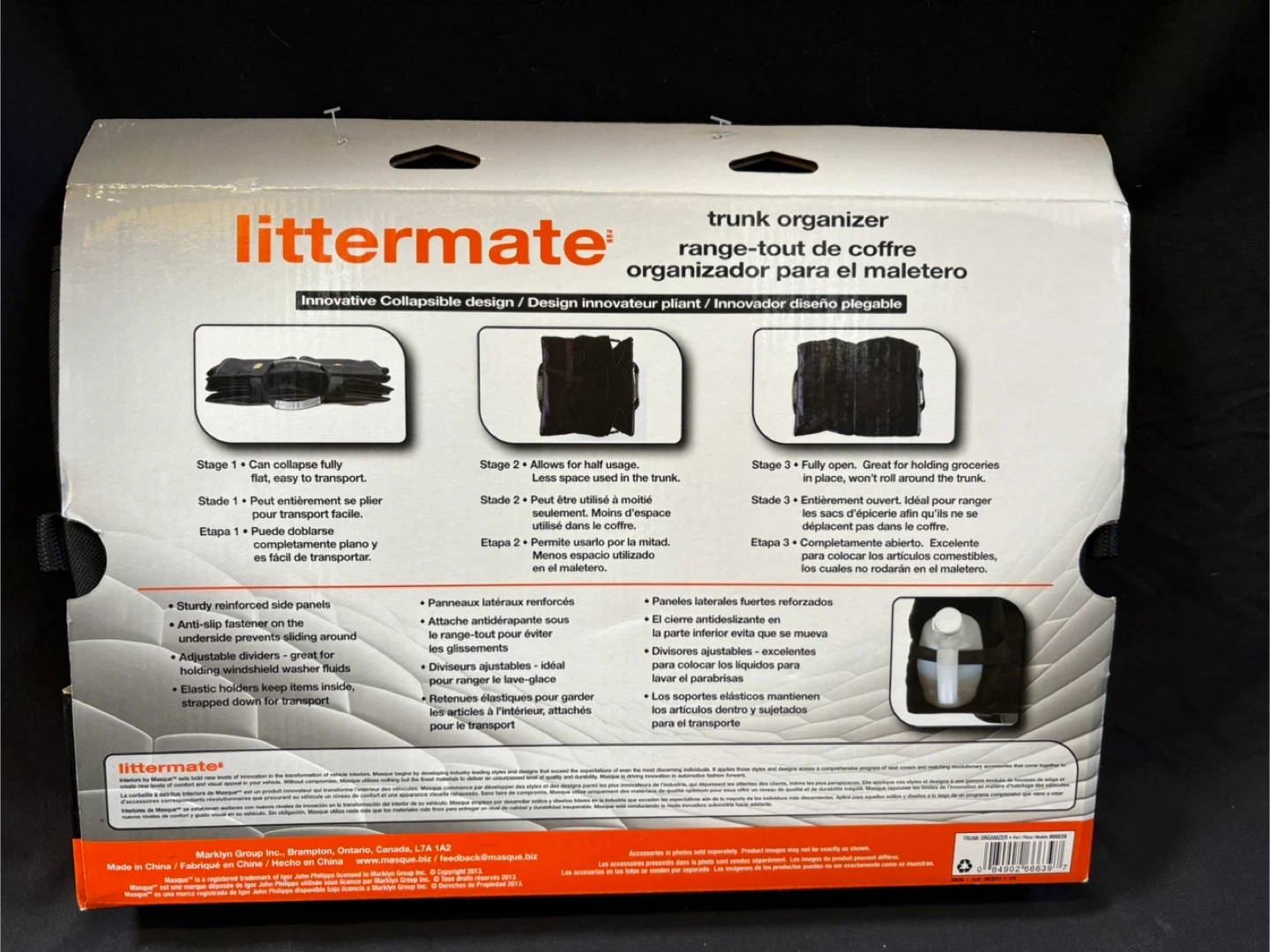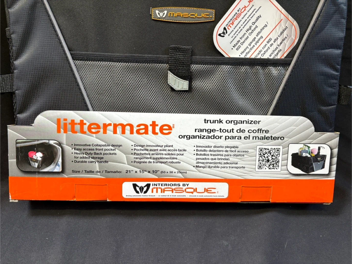 1000+Littermate Trunk Organizer by Masque - Collapsible Design Keep your car organized with this Littermate trunk organizer by Masque! It features an innovative collapsible design for easy storage when not in use. Key features: - Easy access front pocket - Roomy interior pockets for added storage - Durable carry handle Size: 21" x 15" x 10" (53 x 38 x 25cm) $15 Pick up Victoria Park & O’Connor area