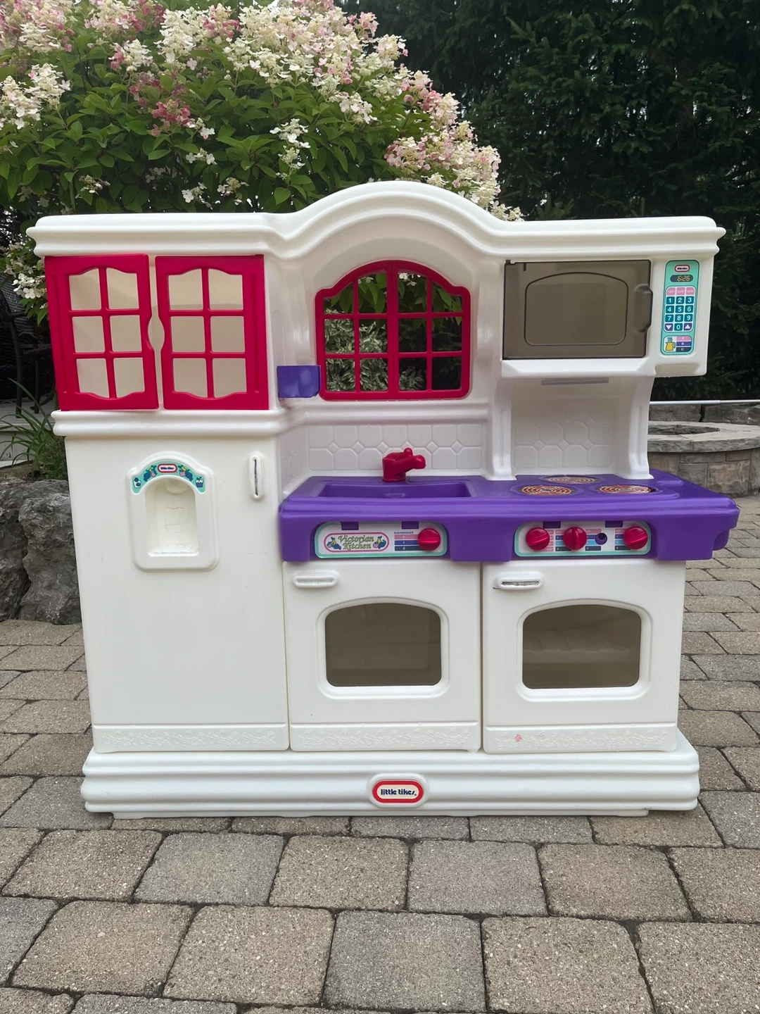 10Selling a Little Tikes kitchen play set, complete with various accessories. Great for hours of imaginative play for your little one! Includes plastic food and utensils. Pickup and cash only.