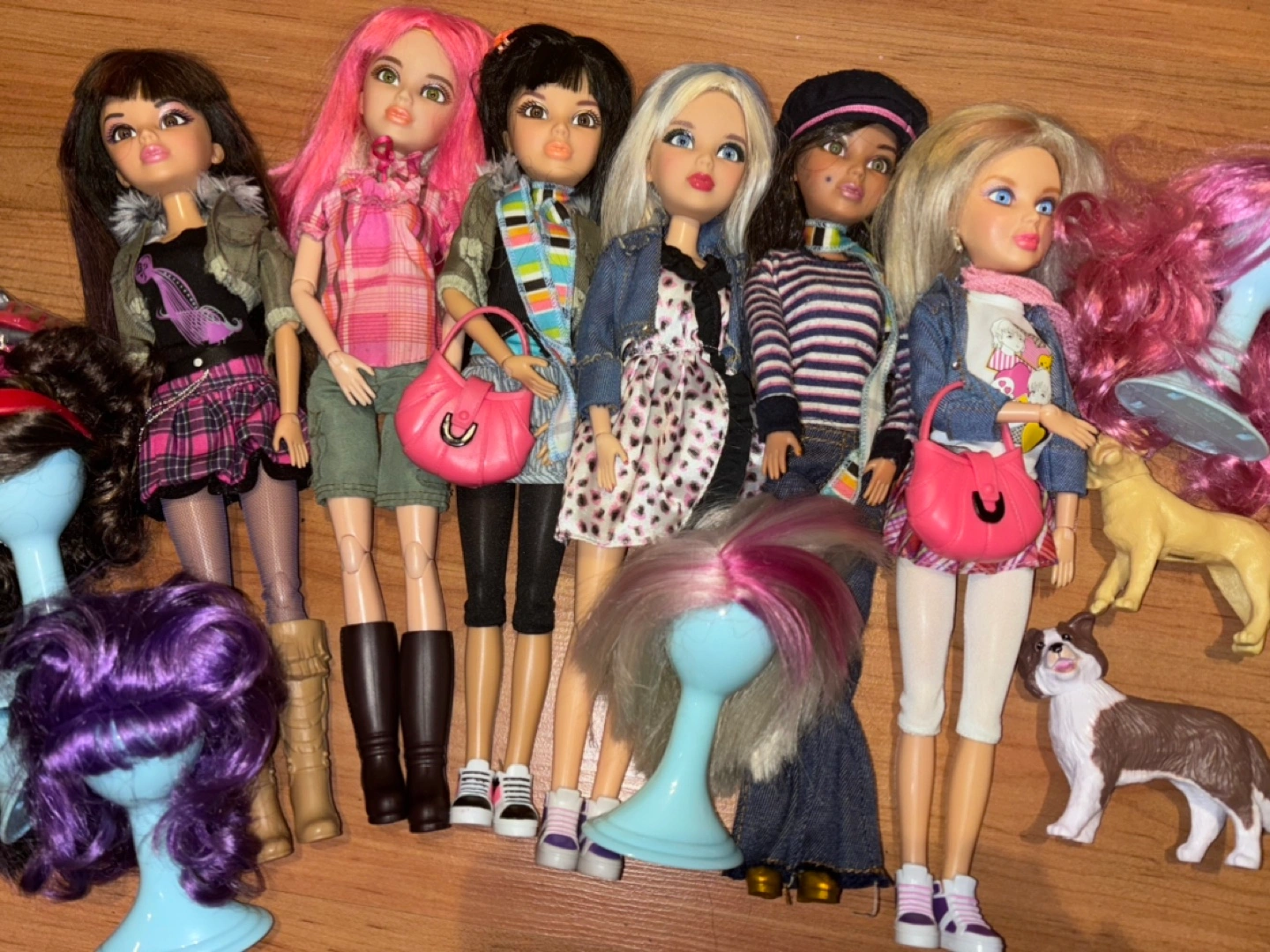 6 Liv Dolls. Please read full description as it very detailed to avoid too many additional questions that has already been answered below. Each are $15 Alexis is $10 All are fully clothed. All Liv Dolls plus wigs and accessories will be a total of $50 for everything in photos. Or down below individual prices for other items listed. Each wig costs $3 or $10 for all 5 for individual. Yes, the wig doll stands will be included. Both dogs $5 for individual Liv Doll Purse $5 for individual from left to right. Wave 2 Daniela Doll. Amazing condition. No flaws. Has most of her original outfit. Only flaw is the chain on the skirt. School’s Out Hayden Doll. Great condition. No flaws. Comes with her original shirt and pants. Wave 1 Daniela Doll. Comes with all her original outfit. Great condition. No flaws. Salon Colour Change Sophie. Nothing wrong with her. She still is able to colour change. Her toes, nails and lips and makeup still colour change. I haven’t tried the hair. Last time i rem still could. She comes with her original wig and dress. Beach Waves Alexis. Doesn’t come with a liv doll wig. Her hat is a bit ripped. She is wearing all of walmart exclusive sophie doll’s outfit. She has a sharpie dot on her face. She still in decent condition. Her makeup been worn out. Wave 1 Sophie. Comes in most of her original outfit. Wearing walmart exclusive sophie wig. Nothing wrong with her good condition. *** wigs from left to right. Purple curly wig, from a sophie salon playset from wave 1. Good condition. nothing wrong with it. Black wig with purple streak, Wave 1 Daniela second wig, perfect condition. Brown curly with red headband wig, Wave 1 Alexis second wig. Headband is still attached with the plastic thing so it won’t fall off. Very good condition like new. Short blonde with pink streaks wig, Wave 1 Sophie second wig. Decent and good condition. Nothing wrong just been used a lot my childhood the most. Pink curly wig from the sophie salon playset from wave 1, good condition nothing wrong. ** The dogs are from wave 2. The one on the left is Katie’s dog Sk8 and beside is Daniela’s dog DJ. Their heads can rotate. ** The purse is in good condition. Been used in my childhood. Zipper is plastic. It is crossbody meant for young children of the age 4-8 years old. Would be a bit long as a shoulder bag. Smoke Free & Pet Free Household. Pick Up Only, No Delivery. Cash Only. Only reach out if interested in purchasing the item. Do not waste my time.