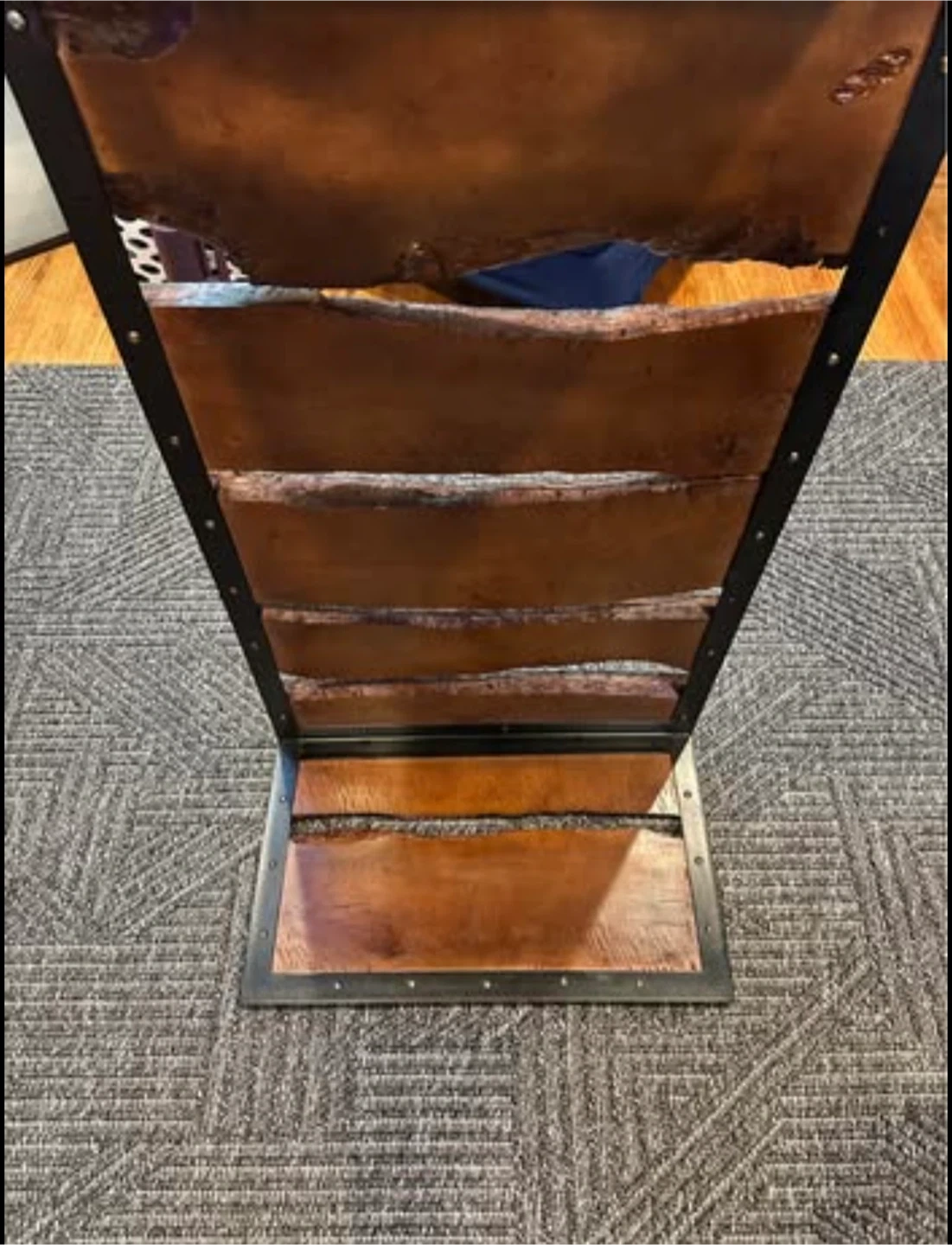 Unique live edge coffee table with a metal frame. It has a rustic, natural look that would be a great addition to any living space. There are some visible signs of wear, as pictured. A quick sand job and re-stain make the table look like new.