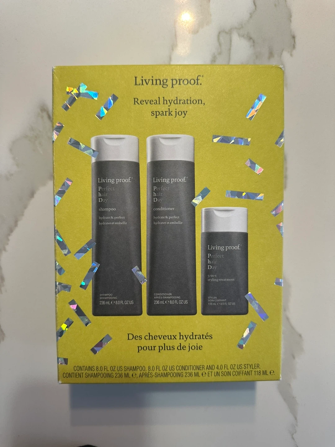 Selling a brand new Living Proof Perfect Hair Day (PhD) set! This set includes: - Perfect Hair Day Shampoo 236 mL - Perfect Hair Day Conditioner 236 mL - Perfect Hair Day 5-in-1 Styling Treatment 118 mL This collection is designed to cleanse and condition for healthier, stronger hair, providing shine and heat protection! *Value: $153 + tax*