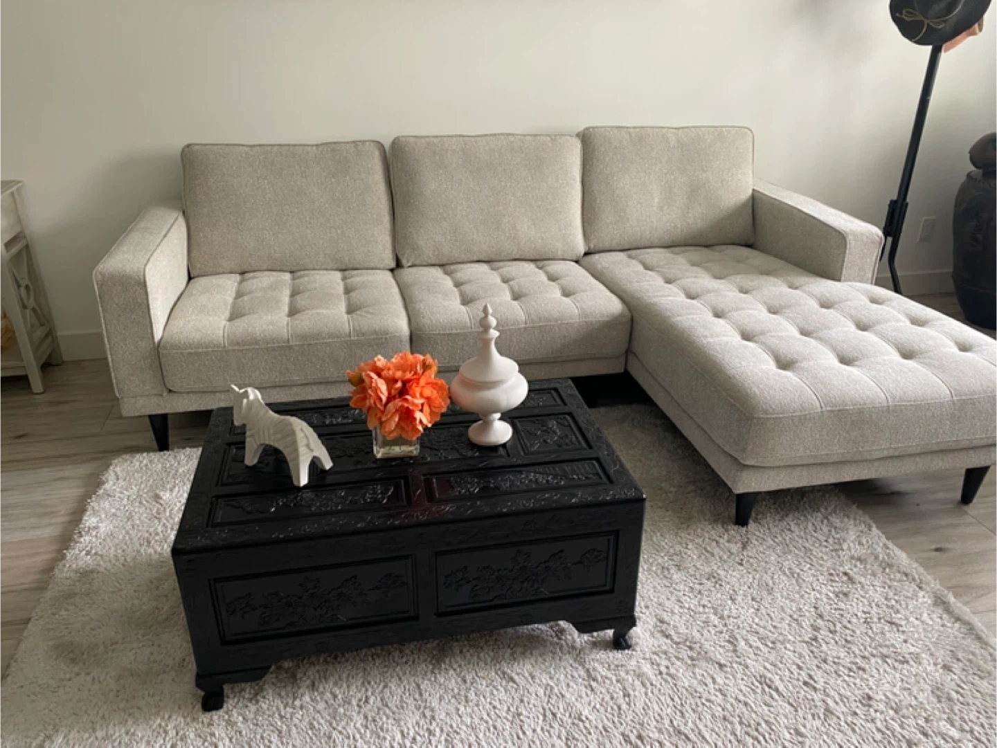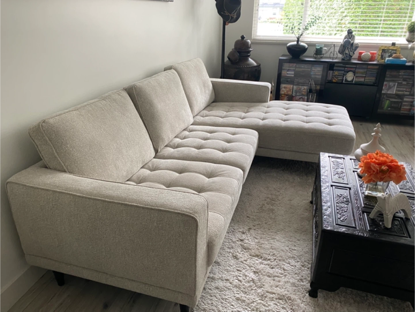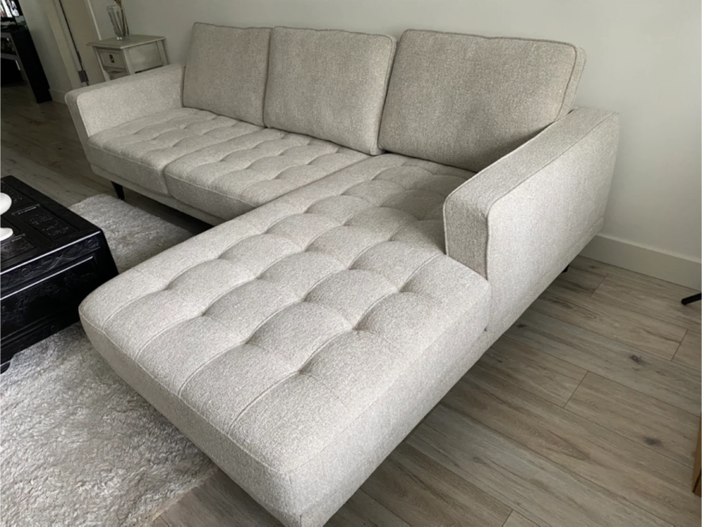 10Color: Grayesh beige Dimension: H 25” x W 96” x L 63” chaise; L 33.5” on seat Bought it in Accent furniture store in Dec. 2003, not even 2 yrs old No pet, non smokers, clean as new. Pick up only