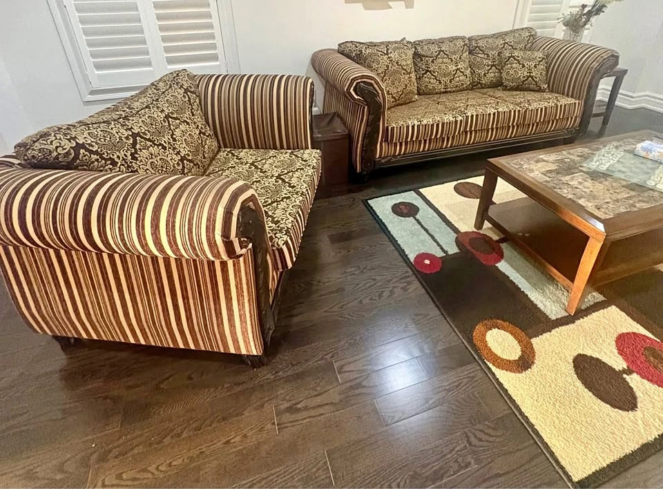 5Modern Sofa Set for Sale – Excellent Condition Includes: 1x Main Large Sofa 1x Love Seat (Seize style) 1x Single Seat 1x Coffee Table 2x Side Tables Condition: Rarely used, in like-new condition 100% cloth material No pets, no stains, no damage Clean and well-kept – looks beautiful! The set has been moved to the garage for easy pickup. If you're interested, feel free to ask for more pictures. Bring a truck for transport.