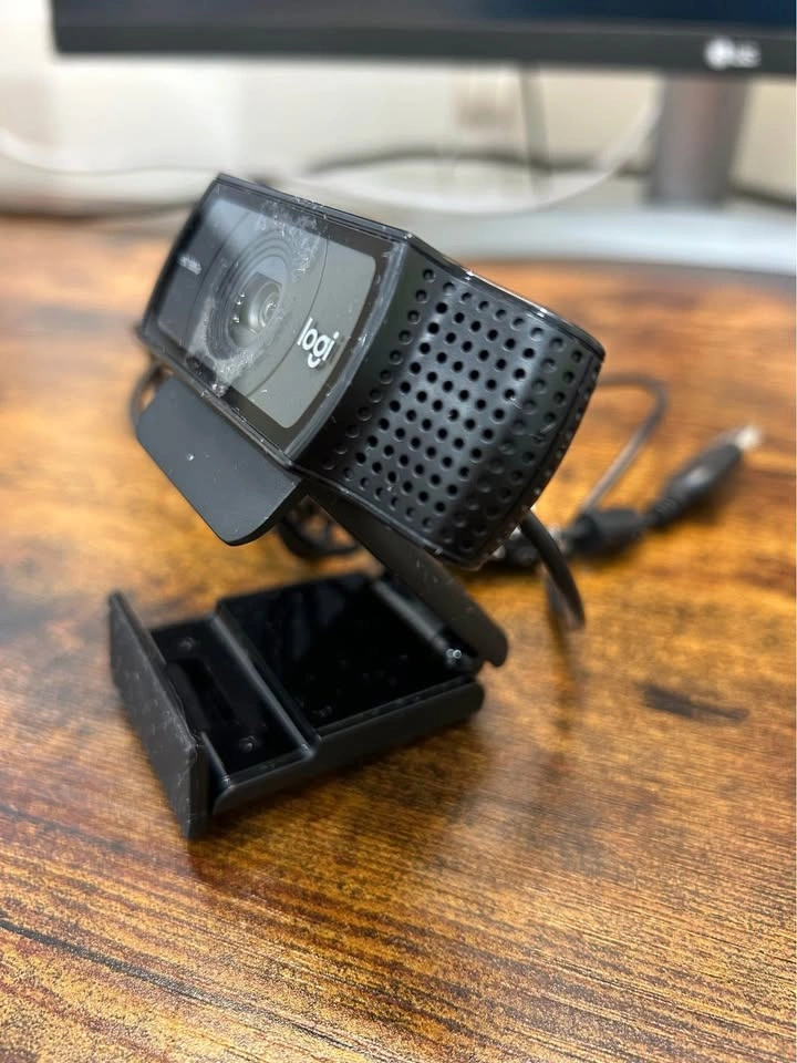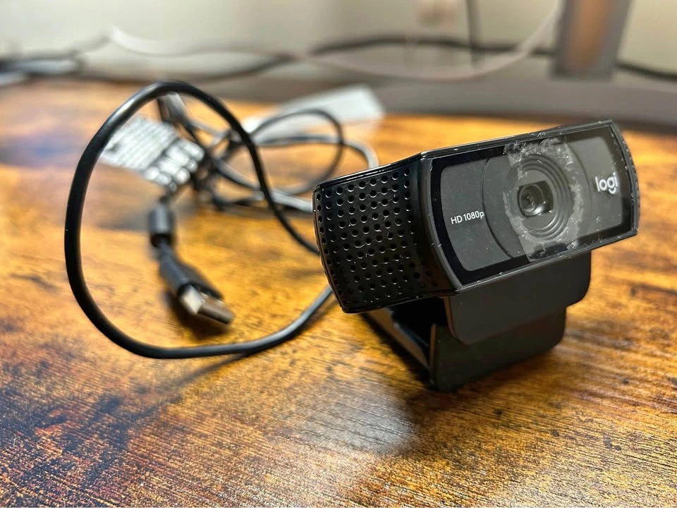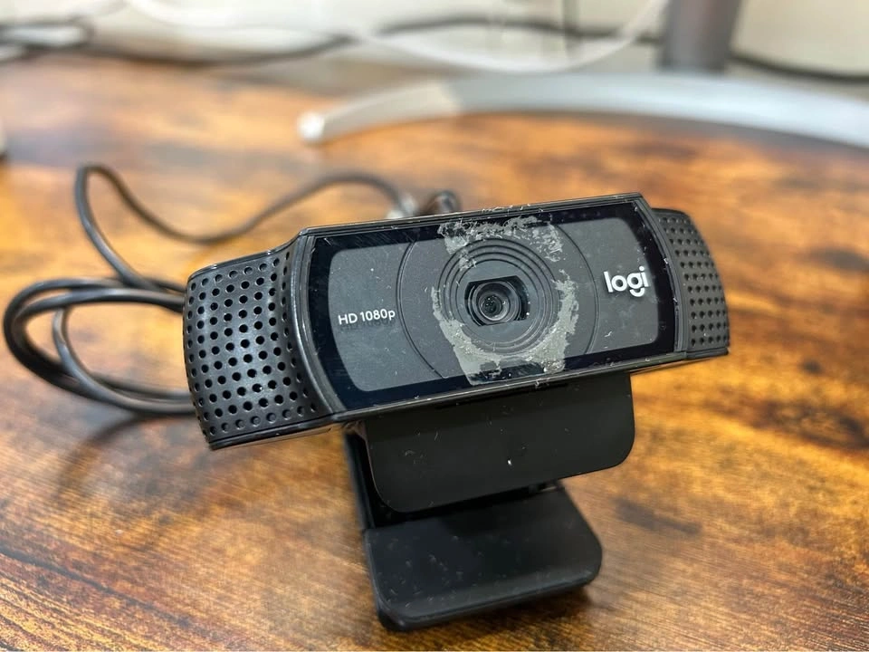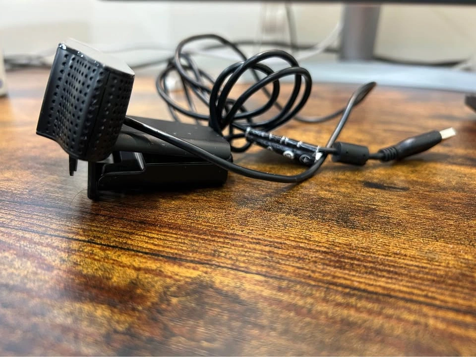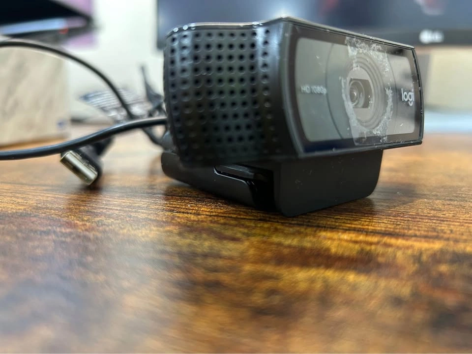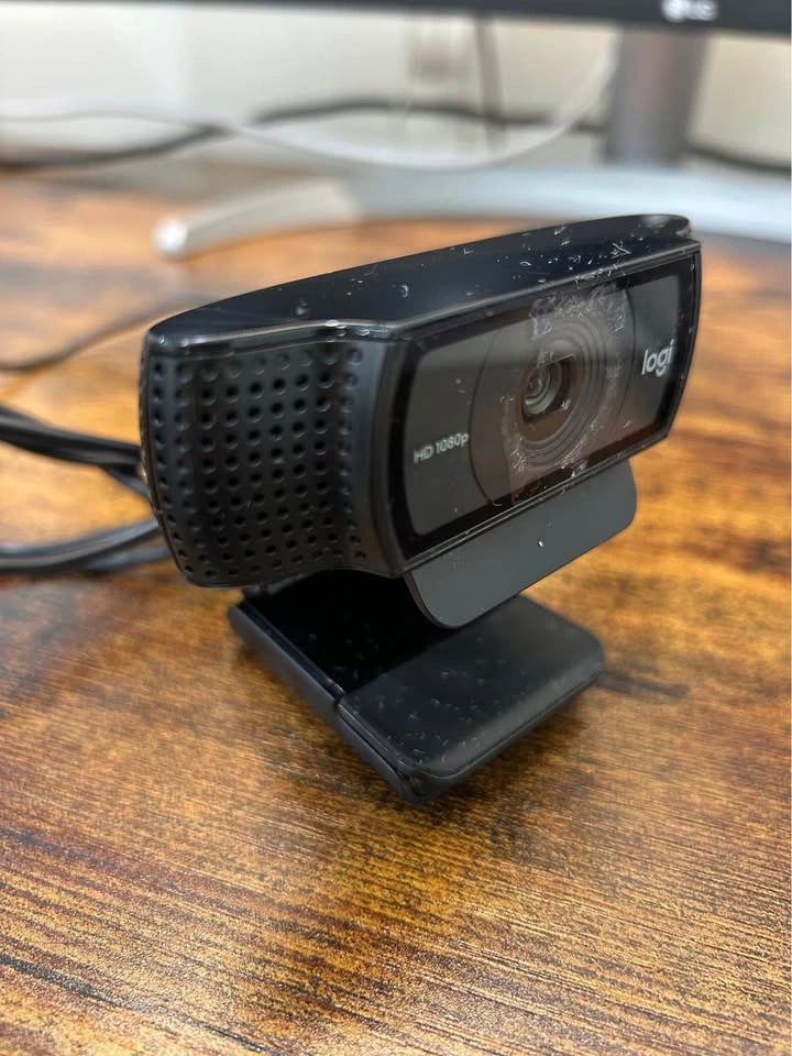 Excellent autofocusing, high- definition webcam, I used it for interviews. Quality and image is very clear. Selling as I don’t need it anymore. Fully adjustable camera tilt angle and large opening to mount onto computer, etc. Extra flap to secure camera onto laptop or it can fold down and sit flush. Tripod mounting hole at the bottom. Full HD 1080p Diagonal field of view (dFoV): 78° Record vibrant, true-to-life HD 1080p video clips that capture the smallest details. Two microphones, one on either side of the webcam, capture natural stereo audio. Record clear videos even in dim light. C920 webcam automatically corrects low-light settings.Frame Rate:30 fps Bit of leftover residue from camera cover installed (never directly on the actual lens)