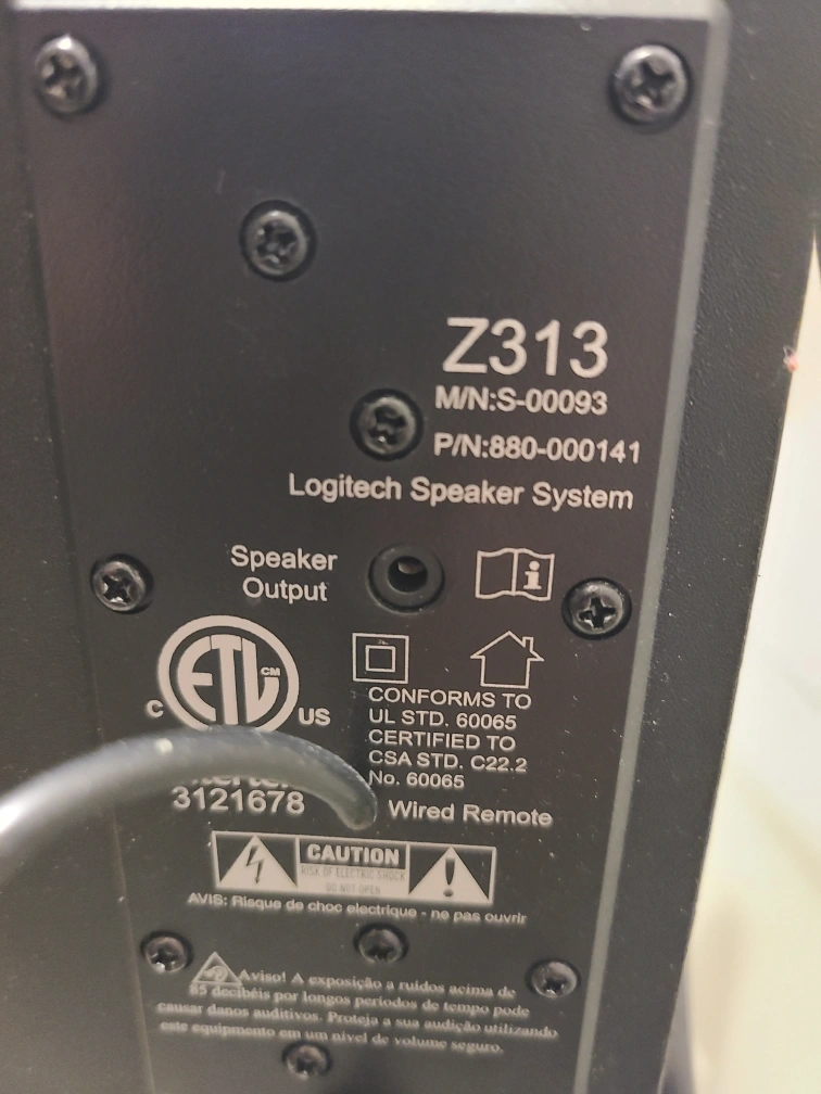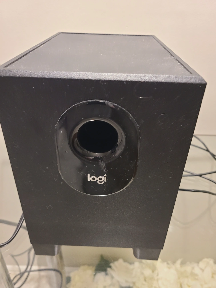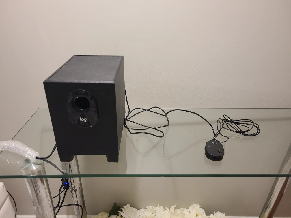 Logi Z313 computer speaker. This is just the bass speaker, (subwoofer)works fine, no issues. Comes with the control pad for volume control and on/off button. Pickup Mississauga, Hurontario and Eglinton