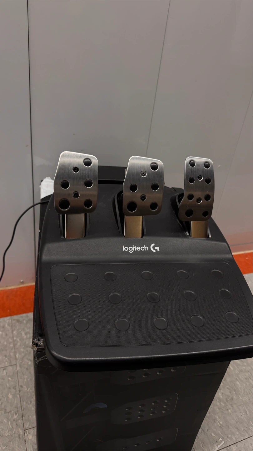 Selling a set of Logitech G Pro racing pedals. These pedals feature customizable springs and elastomers, a load cell brake for pressure detection, and a modular design for repositioning. They are in great condition and come with the original box