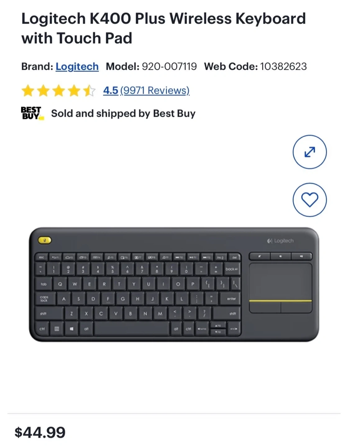 68Looking to sell my Logitech K400 Plus Wireless Keyboard with Touch Pad! Model: 920-007119 Originally bought for $44.99