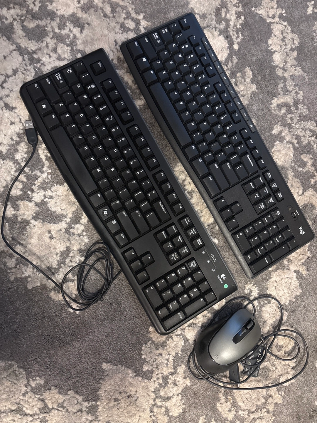 Two Logitech keyboards, one Bluetooth and one wired,Includes a wired Logitech mouse. Please chat if u only need one of them