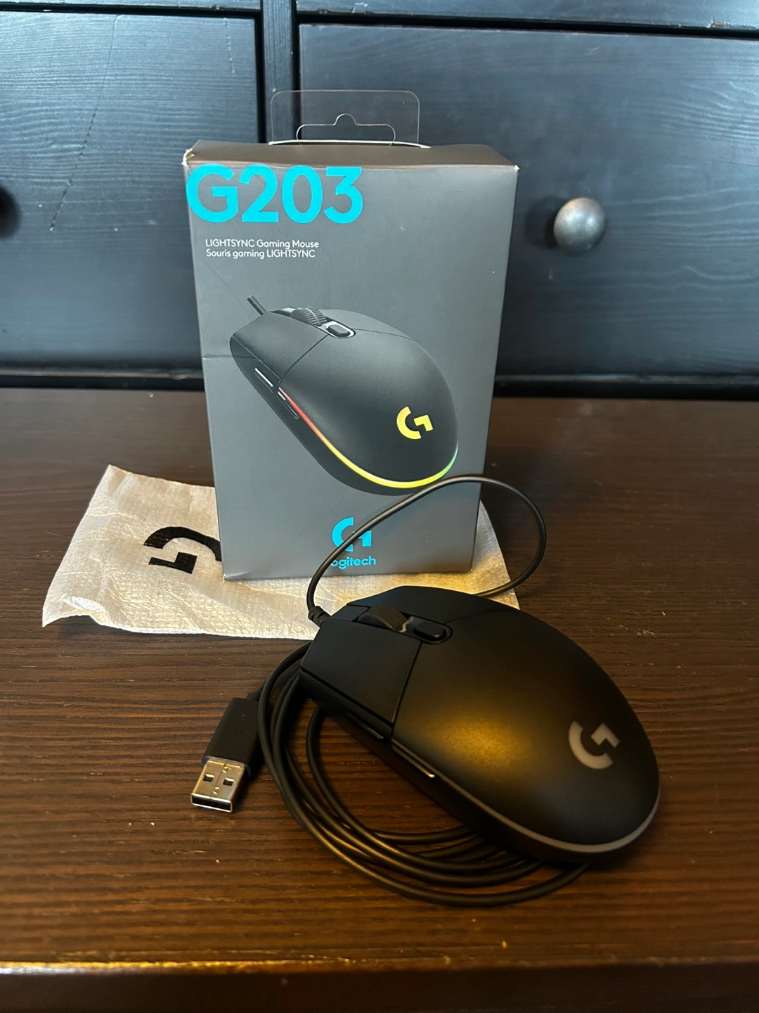 65Brand new logitech g203 mouse With box, wrapper, and everything Open to negotiations and trades
