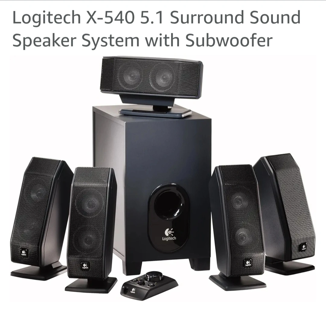 10Selling a Logitech X-540 5.1 surround sound speaker system! It comes with a subwoofer and all the speakers you need for an immersive audio experience . 140 watts. Perfect for gaming, movies, or just enjoying your favourite music. Get ready to upgrade your sound!