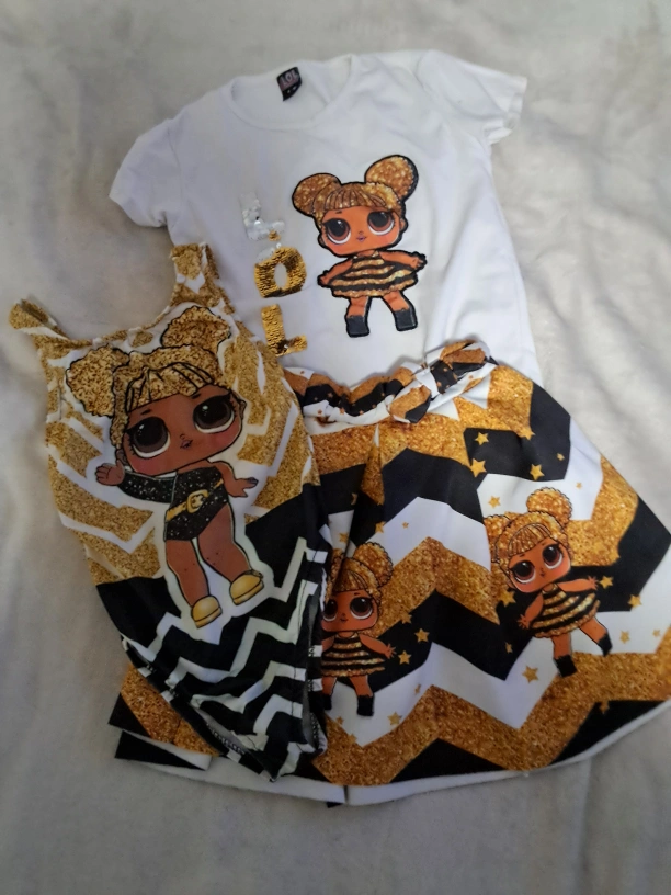 1000+Cute LOL Surprise! themed outfit for girls. Includes a t-shirt, skirt, and bathing. Size 4- 6. Great for any LOL fan!